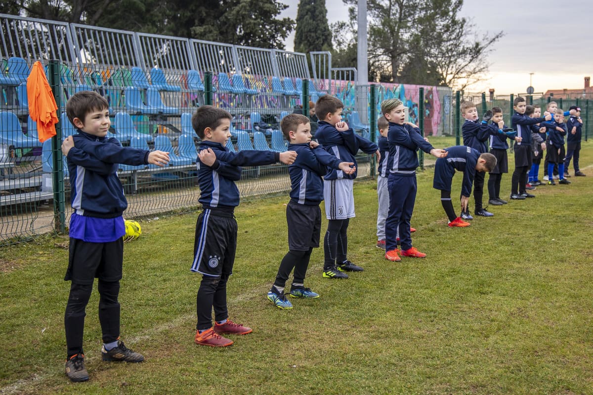 - U toj dobi radimo na fleksibilnosti, koordinaciji pokreta, vježbama istezanja i, naravno, igri. Belci je kapetan, ozbiljan, kaže njihov trener Latif Huremović. Svake nedjelje u 10 sati u igraju ligu s Medulinom, Fažanom , Štinjanom, 'Istra Pulom', ali i Rovinjskim Selom i Rapcem. Te utakmice , bez nekog ozbiljnog inzistiranja na taktici ili pokrivanju igrača, pokazuju koliko klinci mogu, iskazuju svoj talent i smisao za igru.