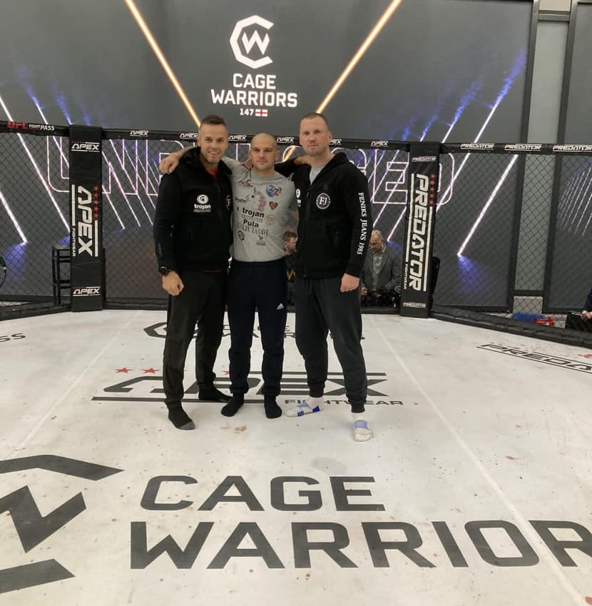 Franko Kliman, Daniel Bažant i Zelg Galešić nakon sinoćnje borbe u Londonu, Foto: FB TrojanFreefighters Pula