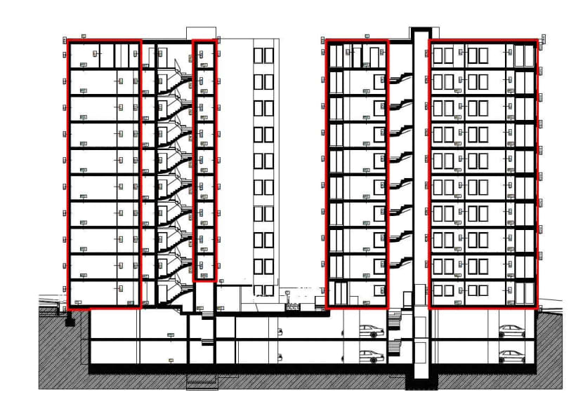 Na jednom od gradilišta postavljena je tabla za jedan od spomenutih nebodera. Kao izvođač radova navodi se tvrtka Projekt Povile d.o.o. iz Novog Vinodolskog.