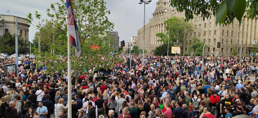Deseci tisuća ljudi u petak su, treći put u dva tjedna, blokirali važne prometnice u središtu Beograda na prosvjedu "Srbija protiv nasilja", izazvanom nezapamćenim masovnim ubojstvima u zemlji početkom svibnja, a najustrajniji prosvjednici ostali su na autocesti i poslije ponoći.