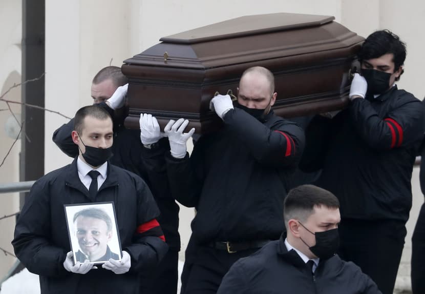 Unutar crkve, Navaljnijeva majka Ljudmila sjedila je držeći svijeću dok su svećenici u bijelim haljinama stajali nad lijesom. Glavni suradnici Navaljnog koji žive izvan Rusije borili su se suspregnuti emocije dok su uživo prenosili oproštaj.