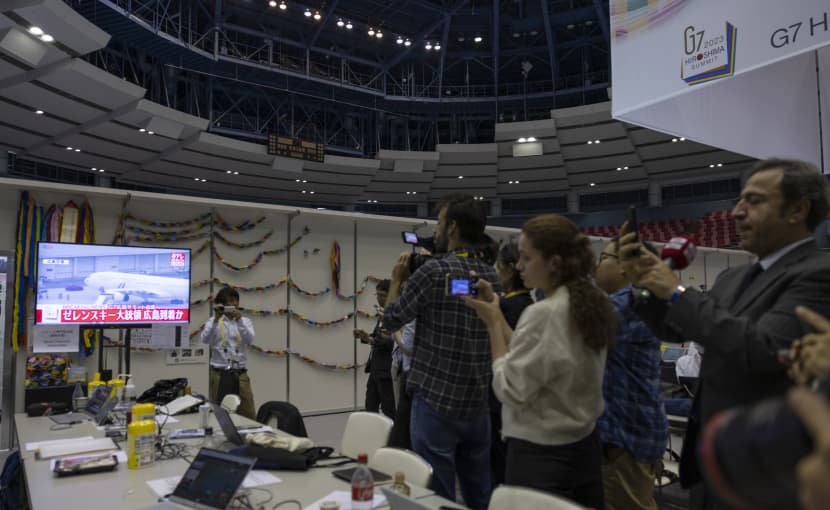 Ukrajinsko izaslanstvo čekalo je na poljskoj granici prije ukrcaja u francuski zrakoplov za Džedu. Svojim sudjelovanjem na sastanku članica G7 Zelenskij je želio doprijeti i do onih zemalja koje su ostale po strani kada je riječ o sukobu u Ukrajini.