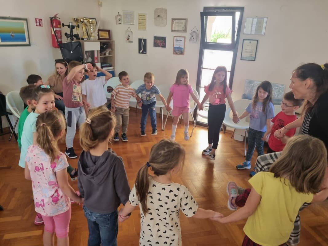 Hanno ballato e cantato, si sono divertiti e hanno imparato qualcosa sull’Istria. Stiamo parlando di un gruppo di sedici bambini del gruppo “Titti” della sezione “Giardini” dell’asilo italiano di Pola Rin Tin di Pola che, accompagnati dall’educatrice Sara Pancun, stamattina presso la Comunità degli Italiani (Circolo) hanno preso parte al laboratorio “Istria magica” condotto dall’attrice Petra Blašković all'interno del Festival del libro per l'infanzia „Monte librić“.