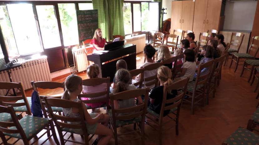 Non abbiamo riscontrato difficolta' perche' i genitori, e per fortuna anche i bambini, erano interessati all'idea di questo progetto. E poi, i genitori sono contenti perche', alla fine, cantano anche loro assieme ai figli.