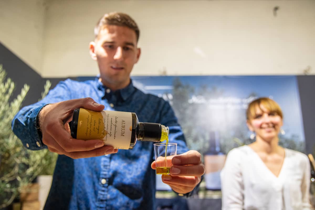 - Il nostro brend di olio extravergine di oliva Salvela è un brend di olio monosorte di varietà di olive autoctone istriane come la buža, la bjelica, la rošinjola. Nella nostra offerta si trova anche l’Aurum che è un blend delle tre varietà nominate più altre istriane come la karbonaca, žižolera e altre, e il Torčol che è pure un blend di olii ed è destinato maggiormente a uso domestico, ci svelano Irena Vitulić e Daniel Starčević del frantoio piu antico di Dignano Uljara Vodnjan.
