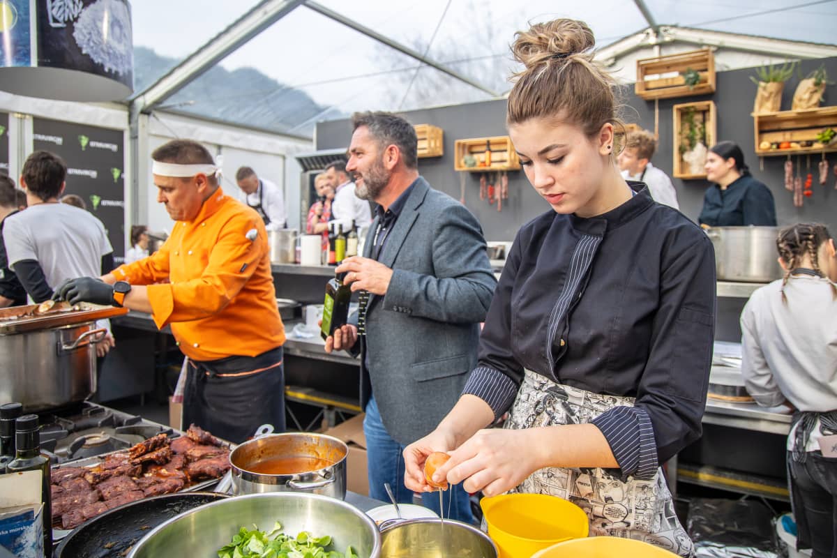 I numerosi visitatori hanno avuto modo così di assistere ai vari gastro show tra cui “Prodotti locali nelle pentole dei ristoratori istriani”, “Urban food di Dignano a chilometro zero”, ma anche “Agricoltori e olivicoltori vs giornalisti e artisti” dove lo chef Marijo Čepek ci ha introdotto in uno dei suoi piatti forti della giornata.