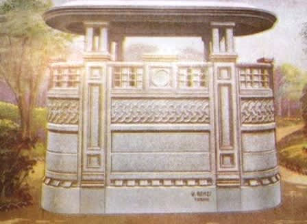 Quei de Pola no li gavemo trovai in catalogo, ma i ghe somiglia sai al model “900”, sempre de Renzi (el marchio se lo vedi) che el iera el più difuso. Podessi esser una variante del “900”. Uno che el ghe somiglia sai a quei de Pola el sta ancora in pie a Roma, in Via Acqua Bullicante nel rion de Torpignattara. La diferenza la sta nele pur simili decorazioni a righe del bloco portante dela tetoia: quele de Pola xe incanalade, quele de Roma in rilievo.