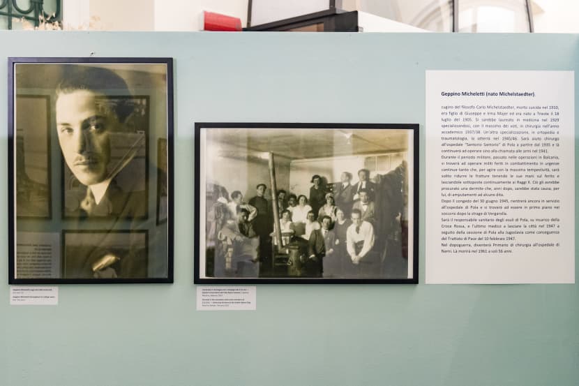 Oltre alle foto del funerale delle vittime di Vergarolla al cimitero di Pola, sono esposti anche vari documenti che attestano i dati biografici e la carriera professionale di Geppino Micheletti, quali attestati di specializzazione medica delle Università di Padova e Bologna, nomine presso gli ospedali di Pola, Vines e più tardi a Narni, da esule in un Umbria, comunicazioni della prefettura e del Comune di Pola in cui vengono lodate le doti umani e professionali di Micheletti e tantissimi documenti ancora.