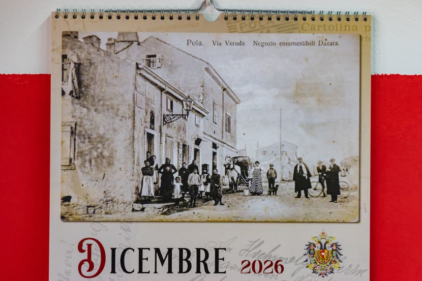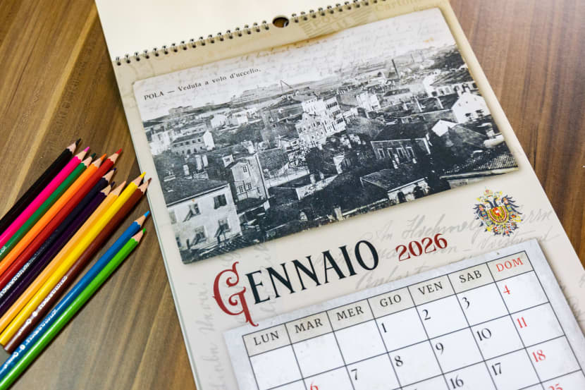 Dopo gaverne oferto un calendario fato da meravigliose fotografie da “album di famiglia” nel 2024 e un altro con i quadri, i disegni e le grafiche dei viagiatori che i gaveva visitado e disegnado Pola dal Seicento a l’Otocento nel 2025, stavolta el calendario recupera foto del periodo dela “defunta”.