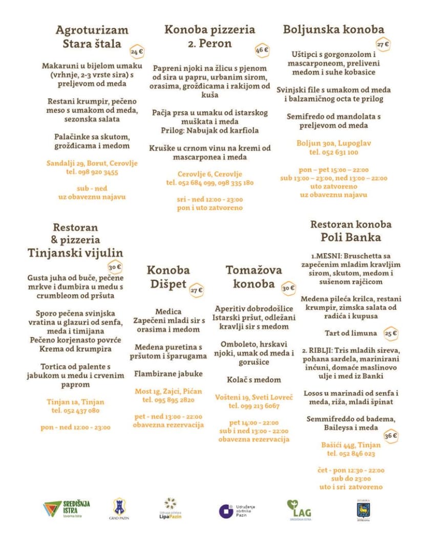 Riječ je o idealnoj prilici da med – namirnicu kojom u zimskim mjesecima jačamo imunitet i čuvamo zdravlje – kušate u maštovitim kombinacijama s tradicionalnim istarskim jelima, koja s posebnom pažnjom pripremaju naši ugostitelji.