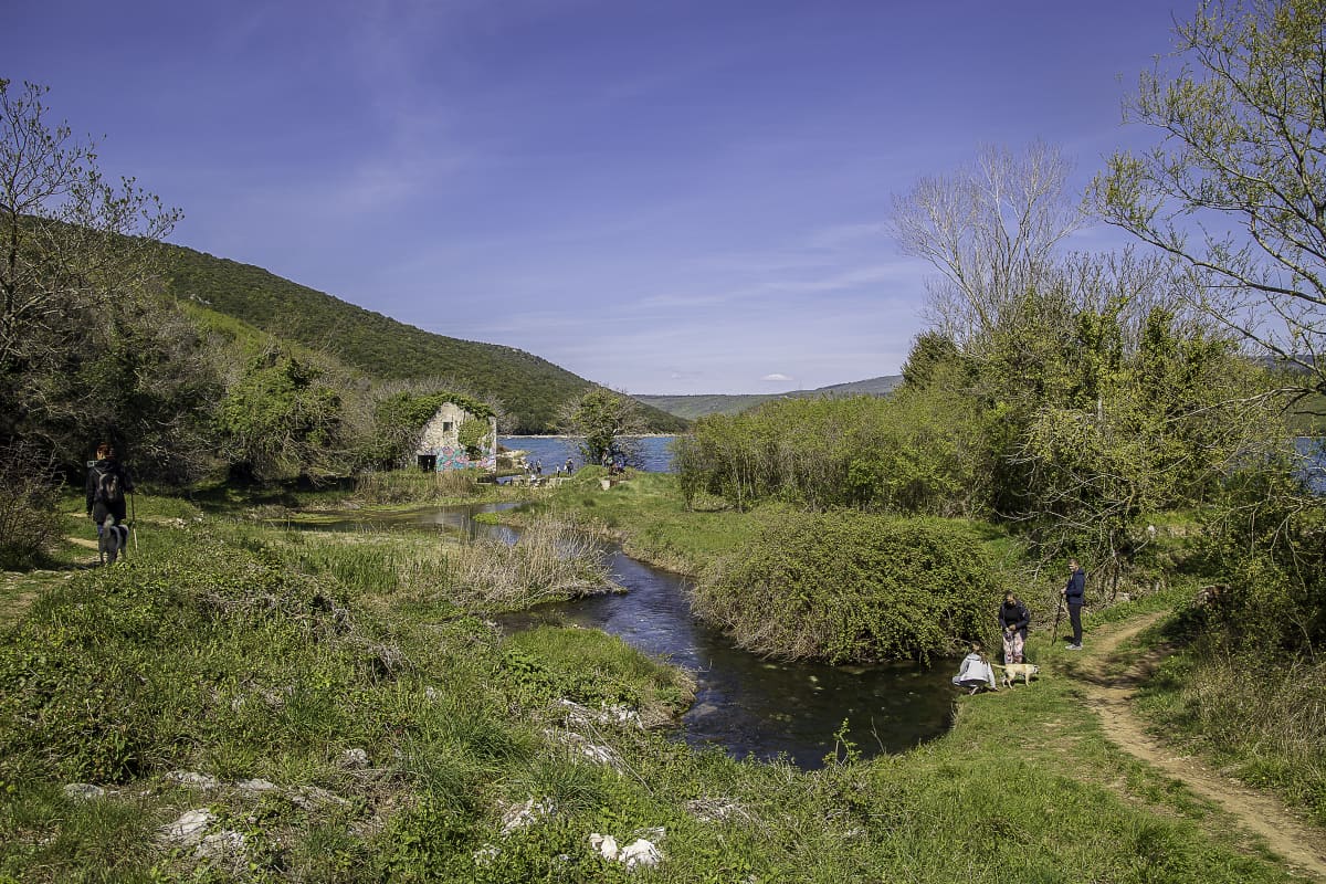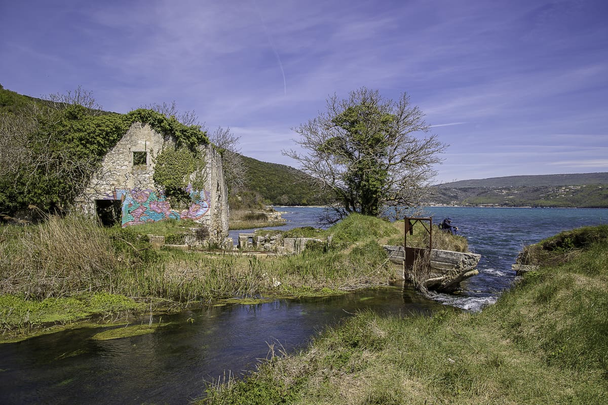 Čim stignete do mlinova fascinirat će vas spoj zelenila i plavetnila, žamor vode koji se ulijeva u more, u daljini pogled na suprotnu stranu preko zaljeva, na zelena brdašca i maleno ribarsko mjesto Trget.