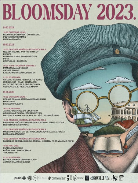 U četvrtak se obilježavanje Bloomsday-a nastavlja uz potporu Veleposlanstva Republike Irske u Gradskoj knjižnici i čitaonici Pula gdje će biti otvorena izložba „Ireland and the Birth of Europe“.