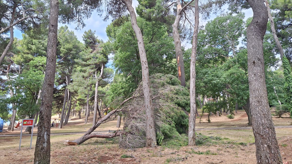 Jutro poslije u Puli, nadležne službe su već uklonile srušena stabla i polomljene grane, osim na par lokacija; na Valkanama, pokraj Kampa Stoja, te na Verudi