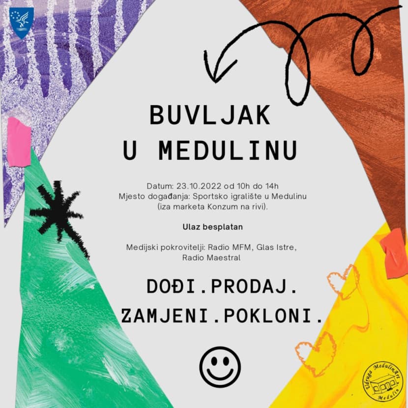 Na sportskom igralištu iza Konzuma u Medulinu sutra (nedjelja) će se od 10 do 14 sati održati buvljak u organizaciji udruge MedulinArt.