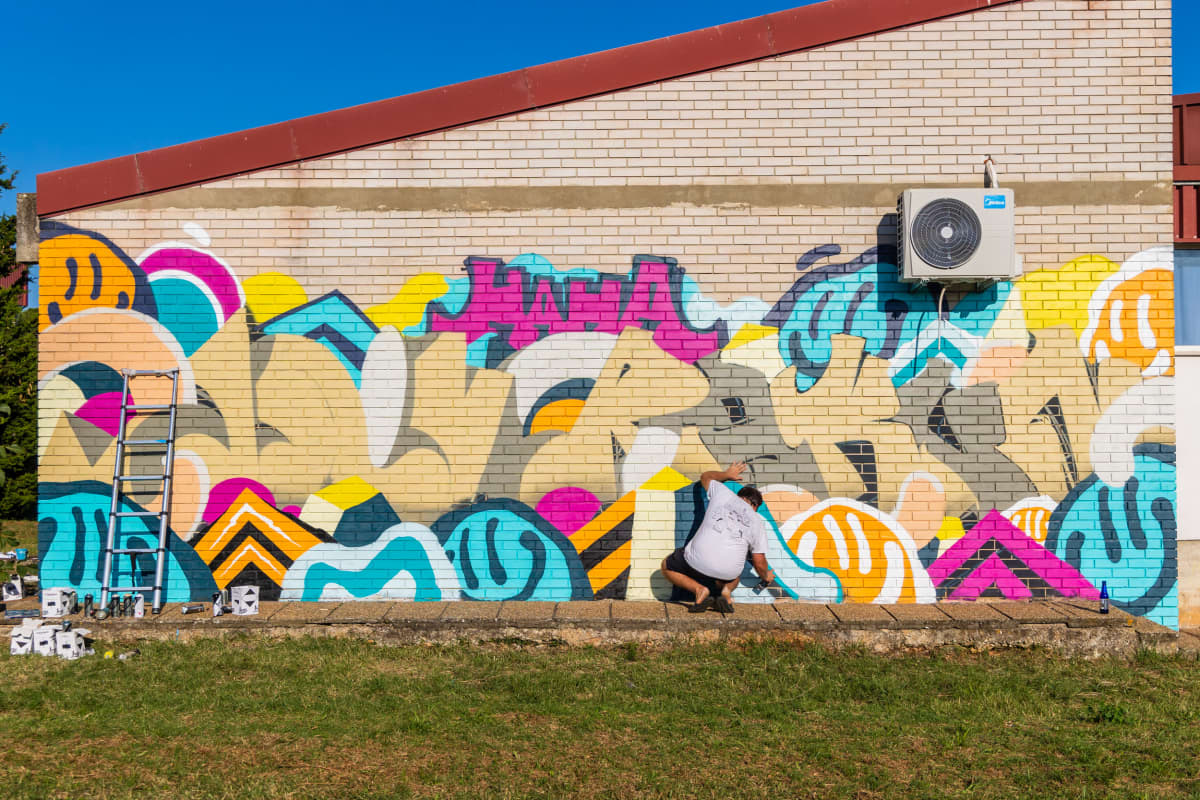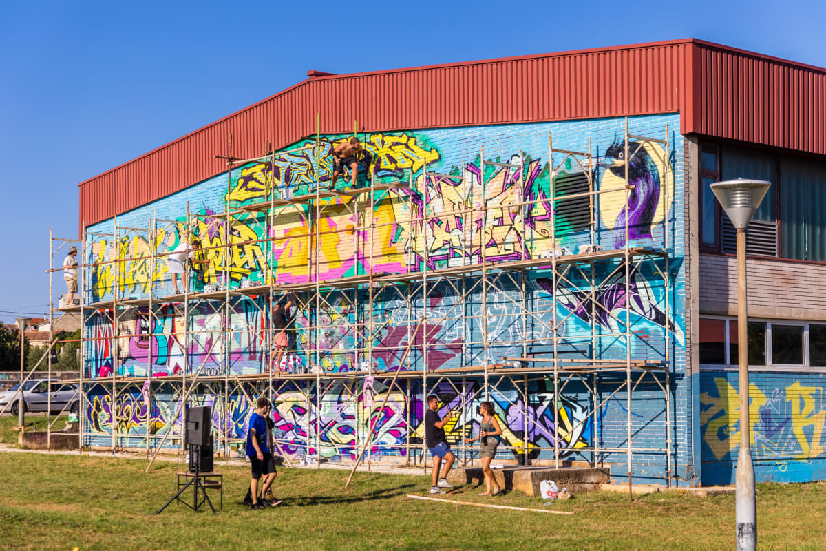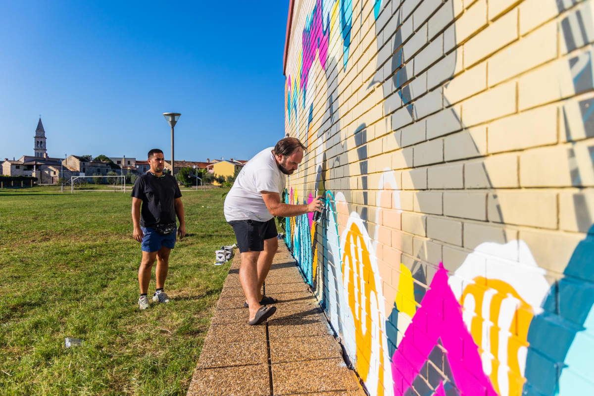 Zid vodnjanske osnovne škole kao svoje platno * "Danas ocrtavamo cijelu jednu stranu dvorane”, rekao nam je organizator Eric Derocchi, “a na najvećem muralu, koji ima oko 150 kvadrata, radi 16 umjetnika