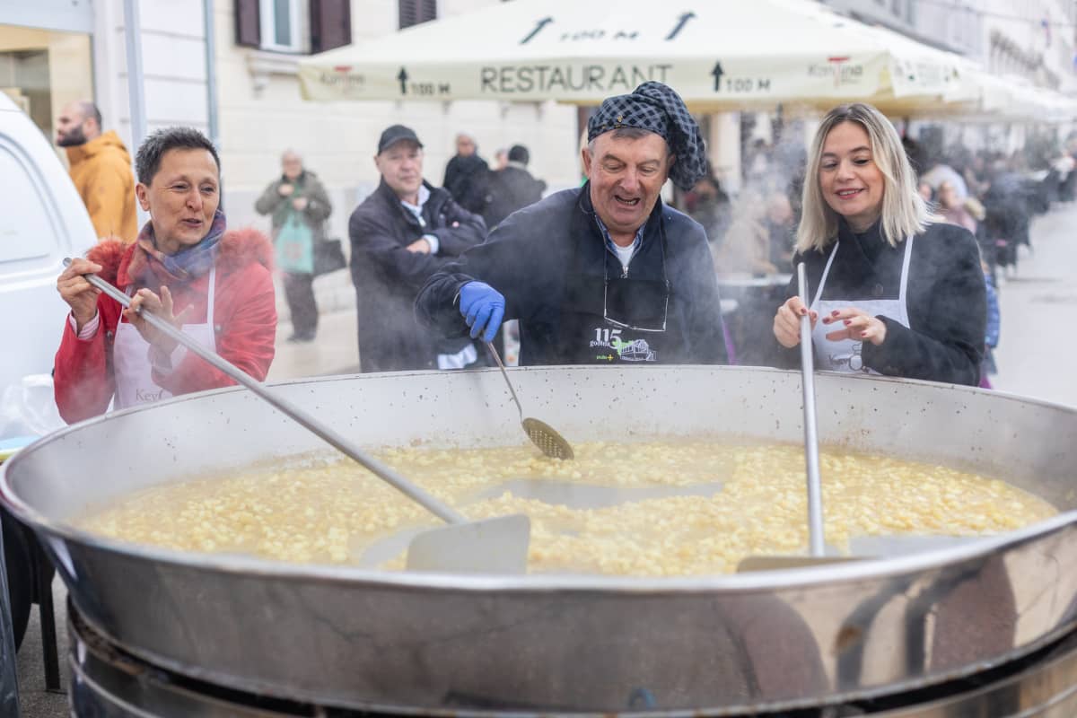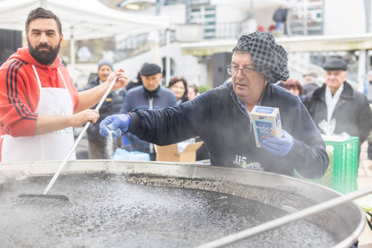 Pripremilo se, otkrio nam je Žižo, od 300 do 400 porcija, ovisno o tome koliko ljudi budu gladni. A bilo ih je, čekali su već od dinstanja kapule nadalje, uživajući uz taktove glazbe