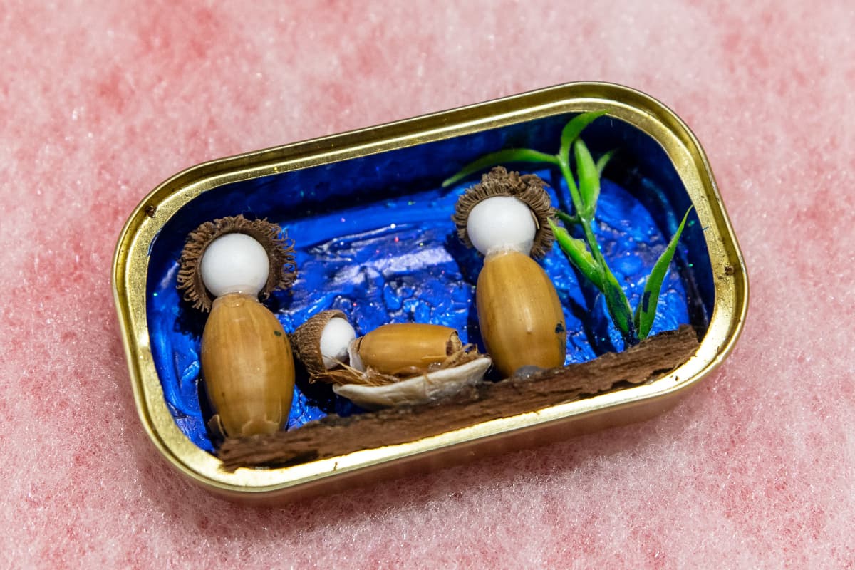 Jaslice su izložene na stolovima pored stupova koje dijele crkvu. Ima ih raznih veličina, a najveće ne prelaze metar širine. Prikazane su u štalici, u špilji, a jedne su čak uprizorene na morskoj obali; pojavljuju se svjetionik, čamci i galebovi, a za jaslice je korištena konzerva sardina.