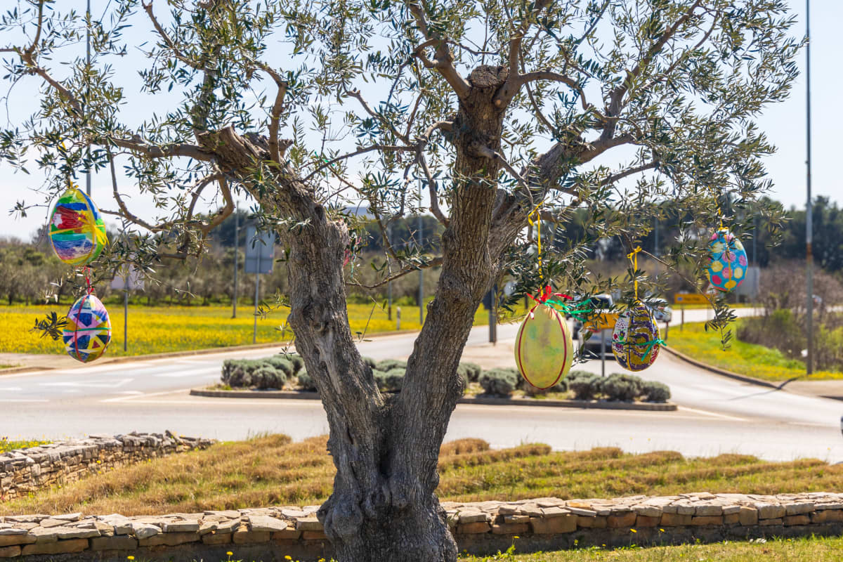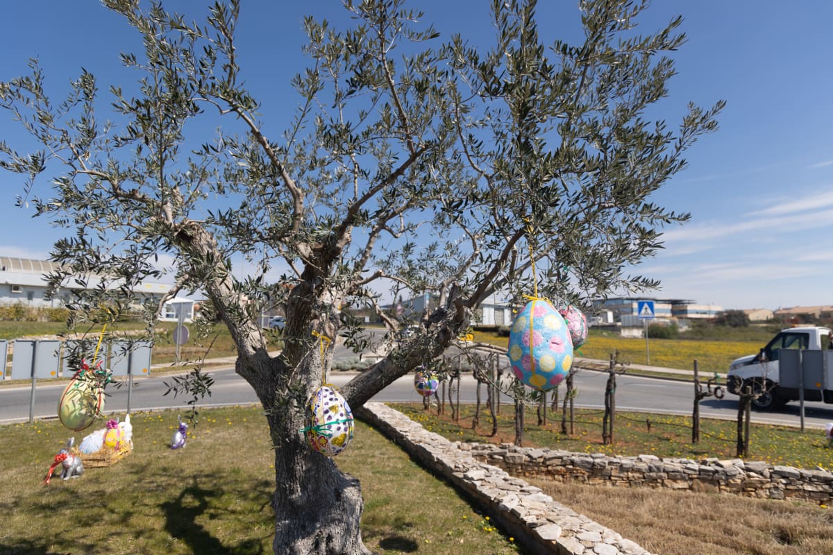S ukrsnim jajima izrađenim prošle godine u školama i vrtićima Vodnjanštine, djelatnici trgovačkog društva Contrada ukrasili su kružni tok na ulazu u Vodnjan iz pravca Pule.