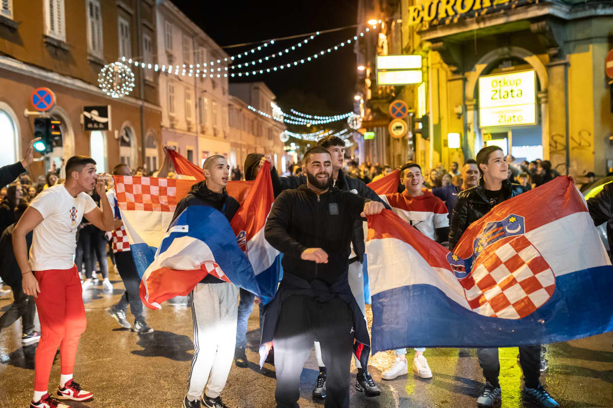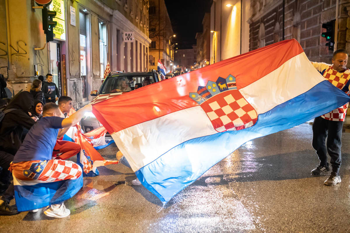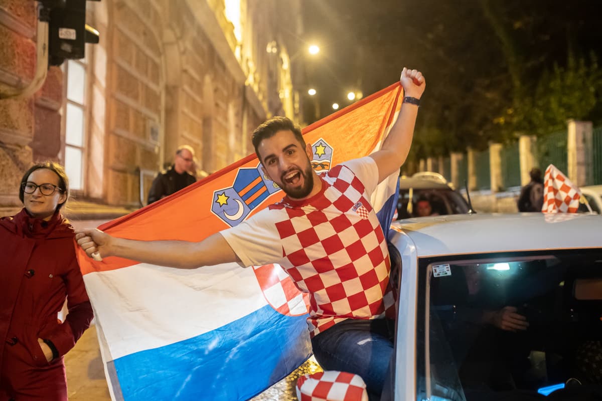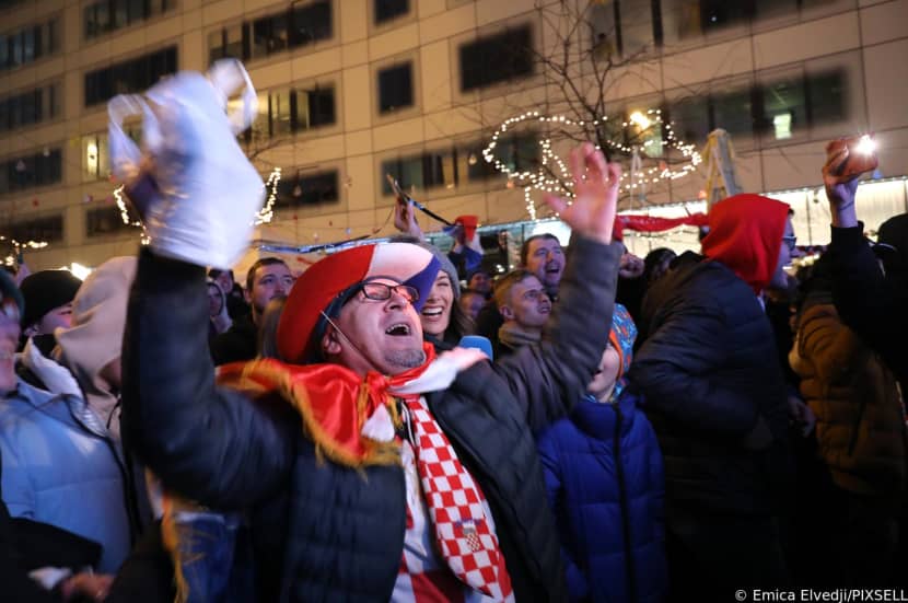 Zagreb: Navijači na Europskom trgu slave prolazak Hrvatske u četvrtfinale Svjetskog prvenstva