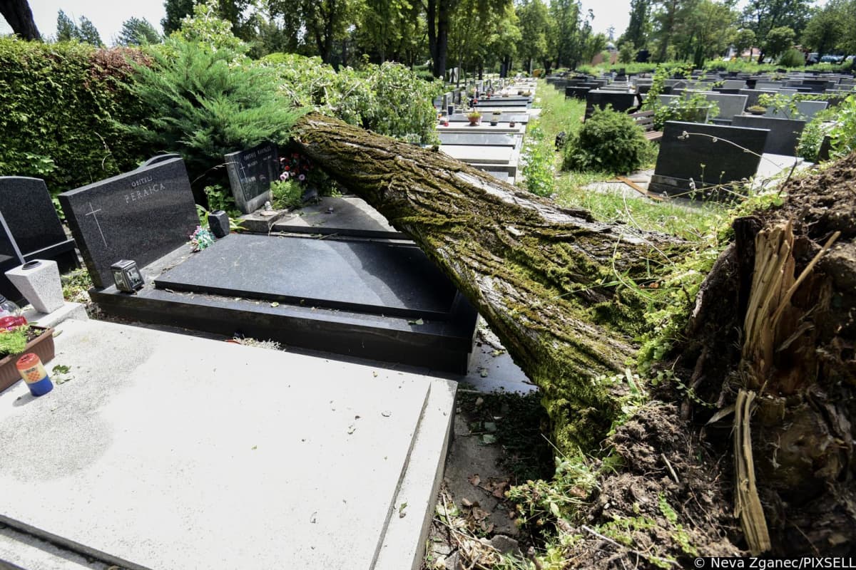 Usljed obilne kiše voda je poplavila neke ulice, vjetar je nosio krovove, rušio stavlja, kranove, semafore, a došlo je do velikih šteta i na zagrebačkom groblju Mirogoj.