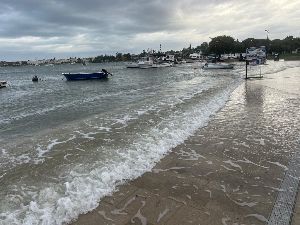 I Vrsar je noćas zaplivao, riva i cesta su pod morem, a državna cesta DC75 između Novigrada i Poreča na mostu Antenal zatvorena je za sav promet zbog visoke razine mora.