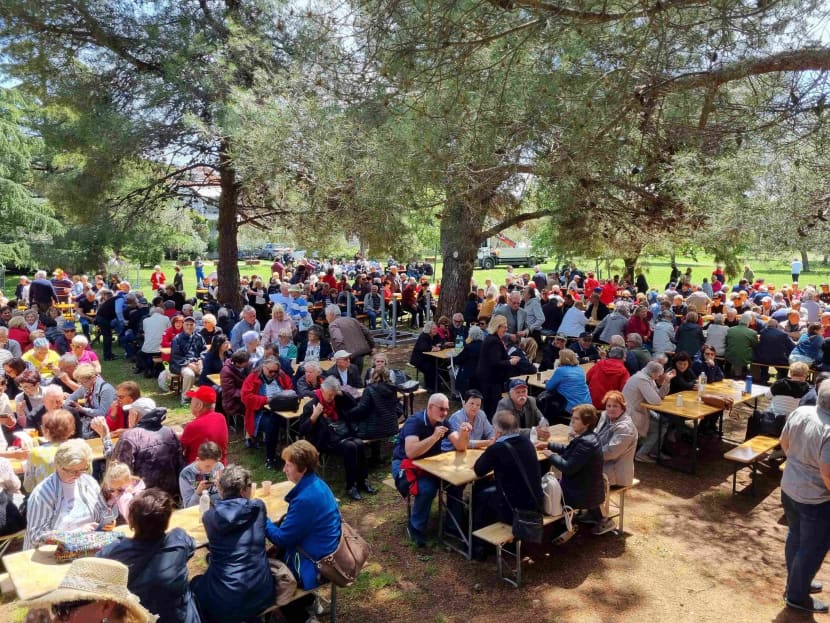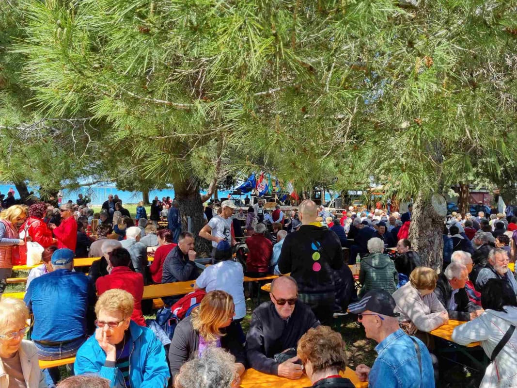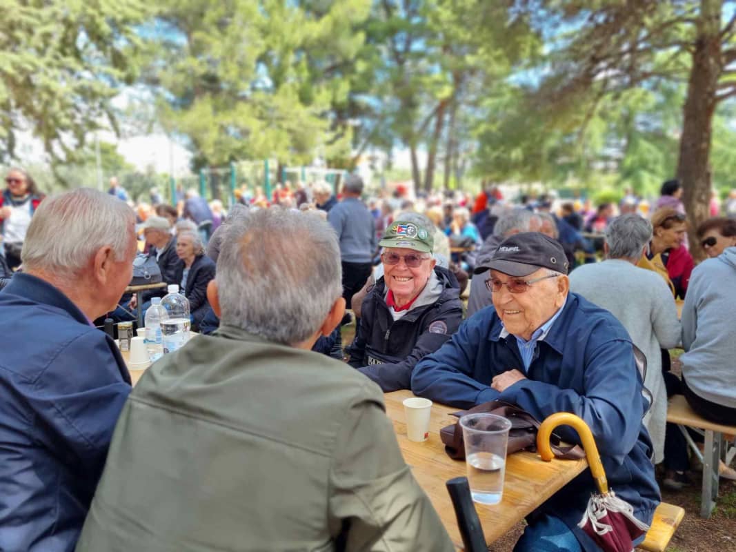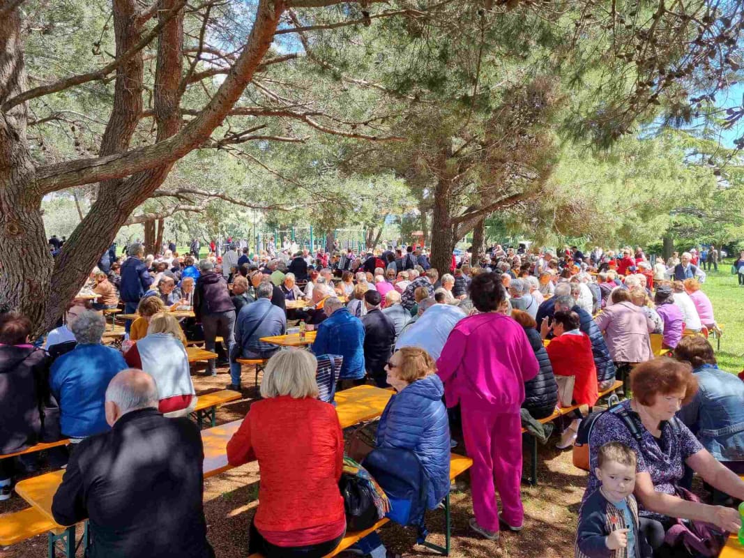 Naravno, poslije kulturno-umjetničkog programa, u parku, zahvaljujući povoljnim vremenskim uvjetima, došlo je u vrijeme za zajednički ručak s nezaobilaznim grahom (donacija rovinjske Valalte), potom za pjevanje, ples i druženja.
