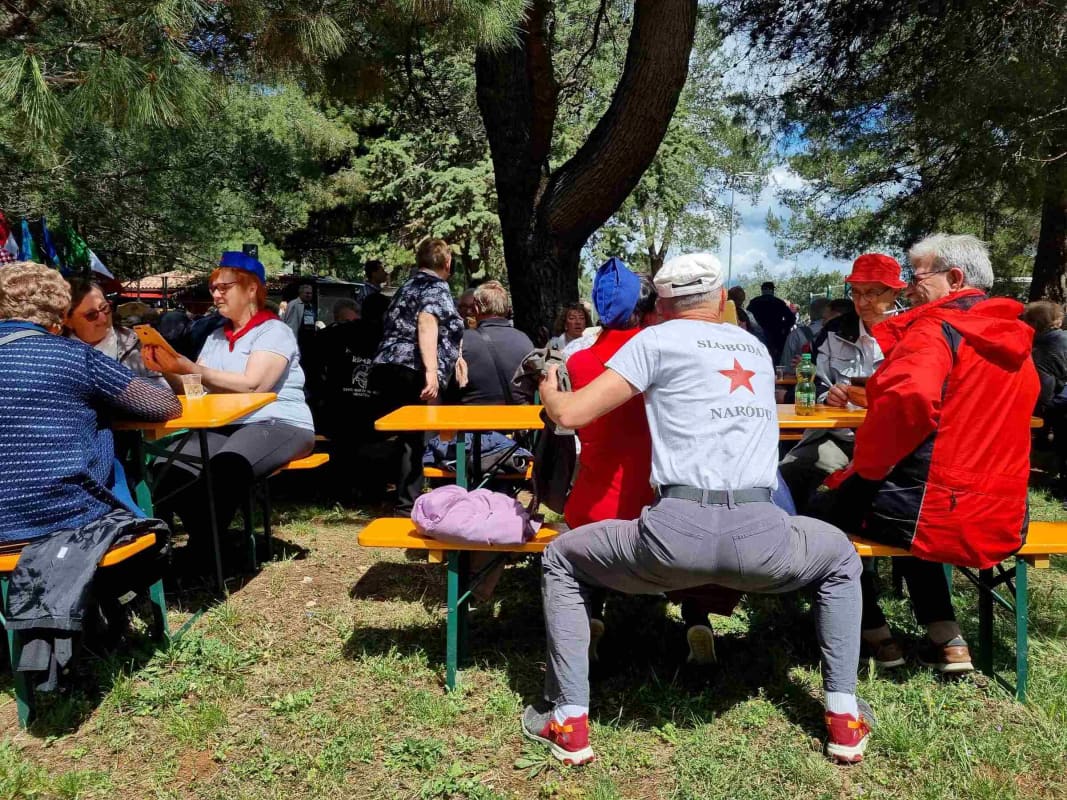 Bilo je tu zastava, majica s likom druga Tita, partizanskih i pionirskih kapa, crvenih pionirskih maramica, netko je odjenuo vojnu uniformu, a zajednički se ručalo s grahom. Pojavili su se i mikroštandovi s memorabilijama, značkama i knjigama o Titu * Nakon otvaranja izložbe "Spaljena istarska sela" i prigodnih govora, nastupili su pulski zborovi Matko Brajša Rašan i antifašistički zbor Praksa * Događaju su prisustvovali antifašisti iz raznih istarskih mjesta, Rijeke, Zagreba, Međimurja, Beograda, Slovenije i Italije