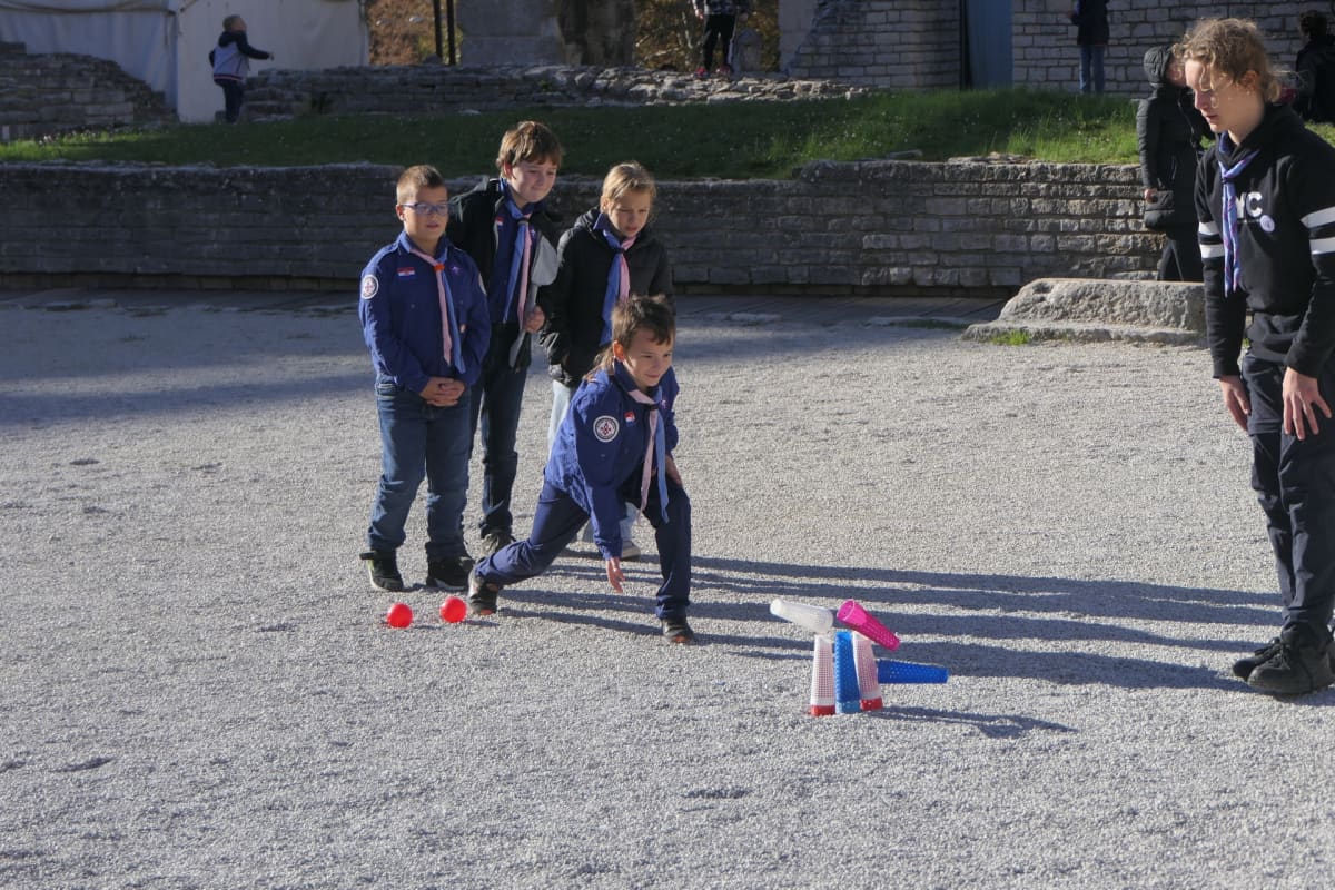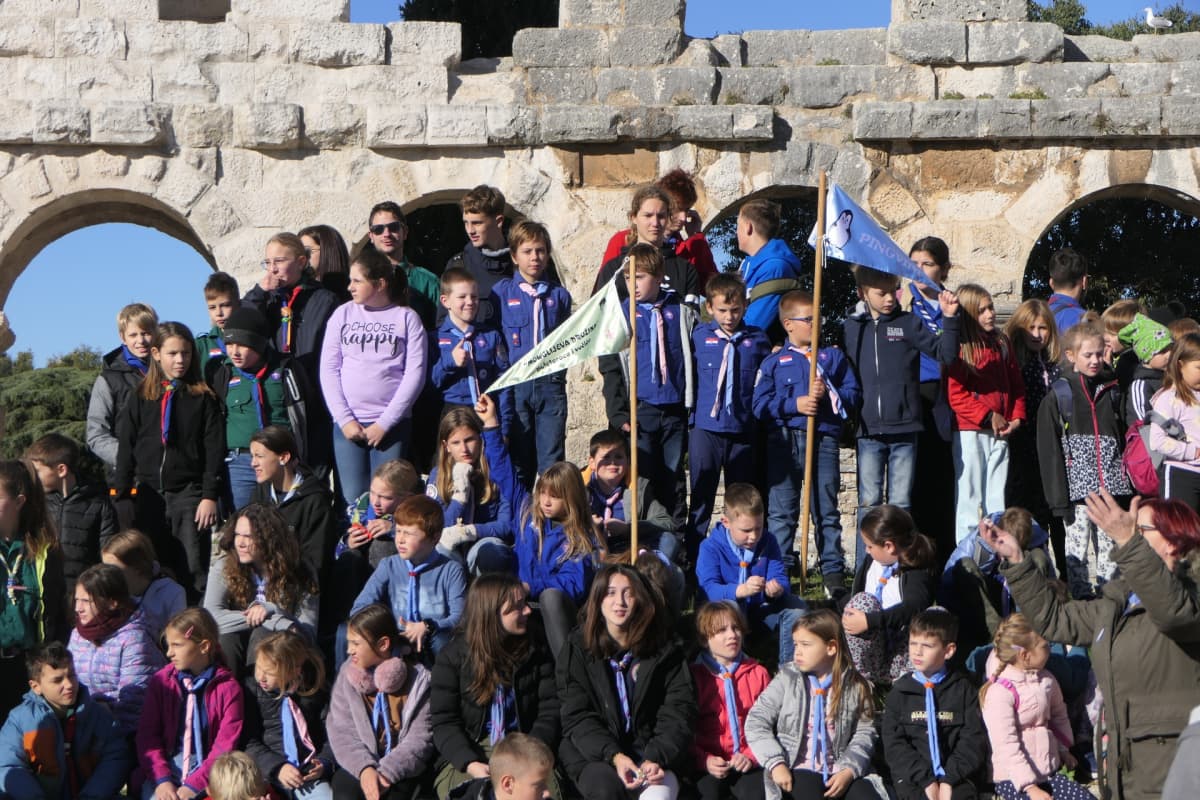 Jedna od glavnih točaka okupljanja bila je pulska Arena na kojoj je napravljen mali poligon na kojemu su mali izviđači pokazivali svoje vještine u rušenju čunjeva, nošenju šišarki s dva štapića, skakanju u jutenim vrećama i trčanju slaloma.