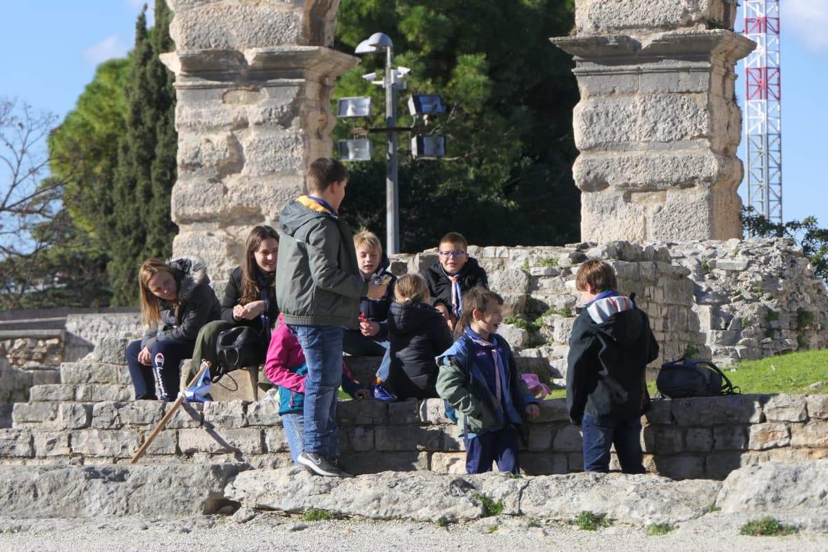 - Djeca su krenula sa šetnjom po Puli, s ciljem upoznavanja kulturnih i povijesnih znamenitosti, te su na svakoj od točaka trebala riješiti jedan od zadataka iz izviđačkog programa, poput vezivanja čvorova, rješavanja slagalica te pranja izviđačkih marama koje su morali oprati i osušiti kao zamjenu za čarape što bi svaki izviđač trebao i morao znati. Poletarci su uspješno rješavali zadatke, pa su tako i oprane marame uspjeli osušiti, a malo im je pomogla i današnja jaka bura i sunčano vrijeme, poručila je Perčić.
