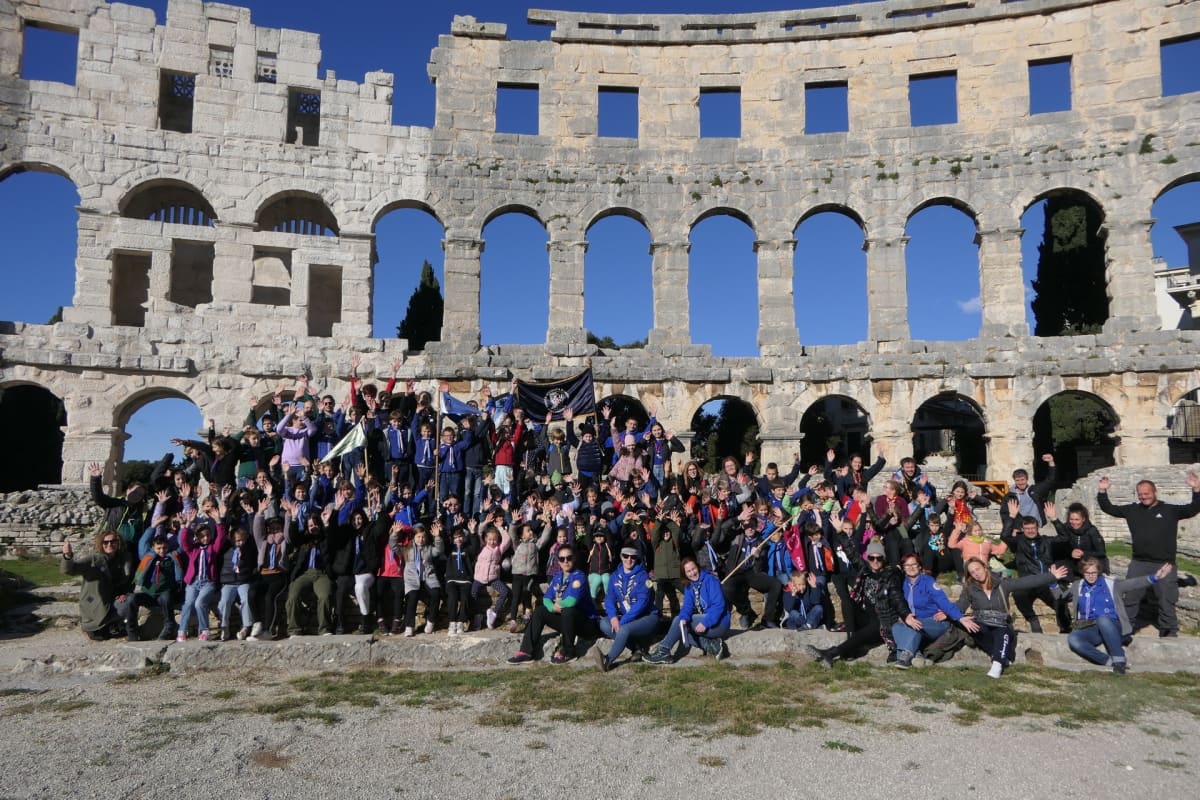 Jedna od glavnih točaka okupljanja bila je pulska Arena na kojoj je napravljen mali poligon na kojemu su mali izviđači pokazivali svoje vještine u rušenju čunjeva, nošenju šišarki s dva štapića, skakanju u jutenim vrećama i trčanju slaloma