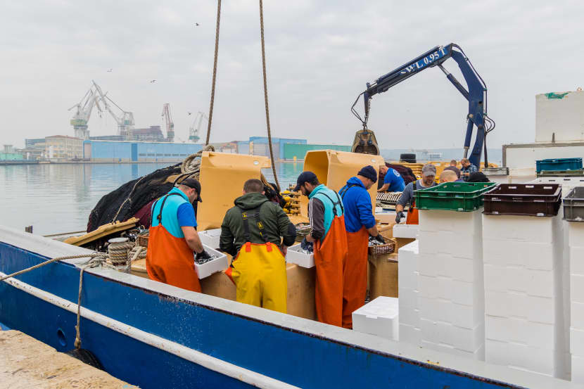 One najskromnije, ali mnogima nadraže - sitne ribe. Srdele, sardoni, nešto šura... I puno posla! Riba se ubrzano pere i pretovara u hladnjače, a dok traje posao, neki su se "užicali" za pokoju ribu za marendu. Prolaznici, ali i galebovi, naravno! Ostale ulov čeka na tržnici