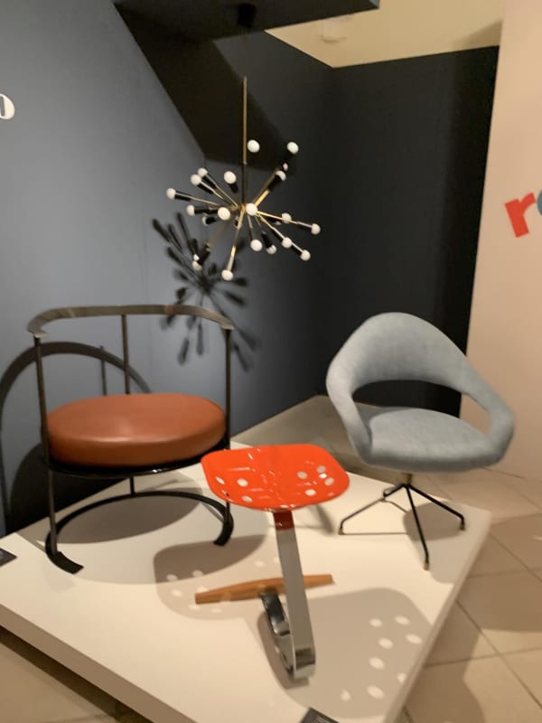 Izloženi su proizvodi koji su postali ikone poput podesivog televizora Phonola 17/18 iz 1956., mehanički sat Cifra 5 tvrtke Solari, pisaći stroj Olivetti Lettera 22 iz 1950. i šivaći stroj Necchi Mirella iz 1957.; oba stroja dizajnirao je Marcello Nizzoli koji je za svoj rad nagrađene Zlatnim šestarom (Compasso d'Oro) odnosno svjetskom nagradom za dizajn koja je ustanovljena 1954.