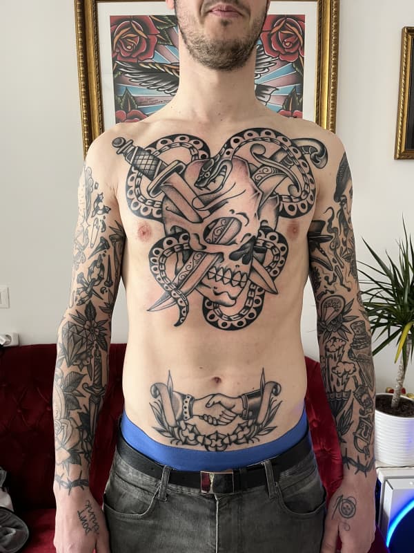 Priznaje nam da osobno voli tetovirati klasične tattoo motive poput leptira, ruža, bodeža i to u američkom tradicionalnom stilu, a najviše voli kada netko prepozna njegov rad.