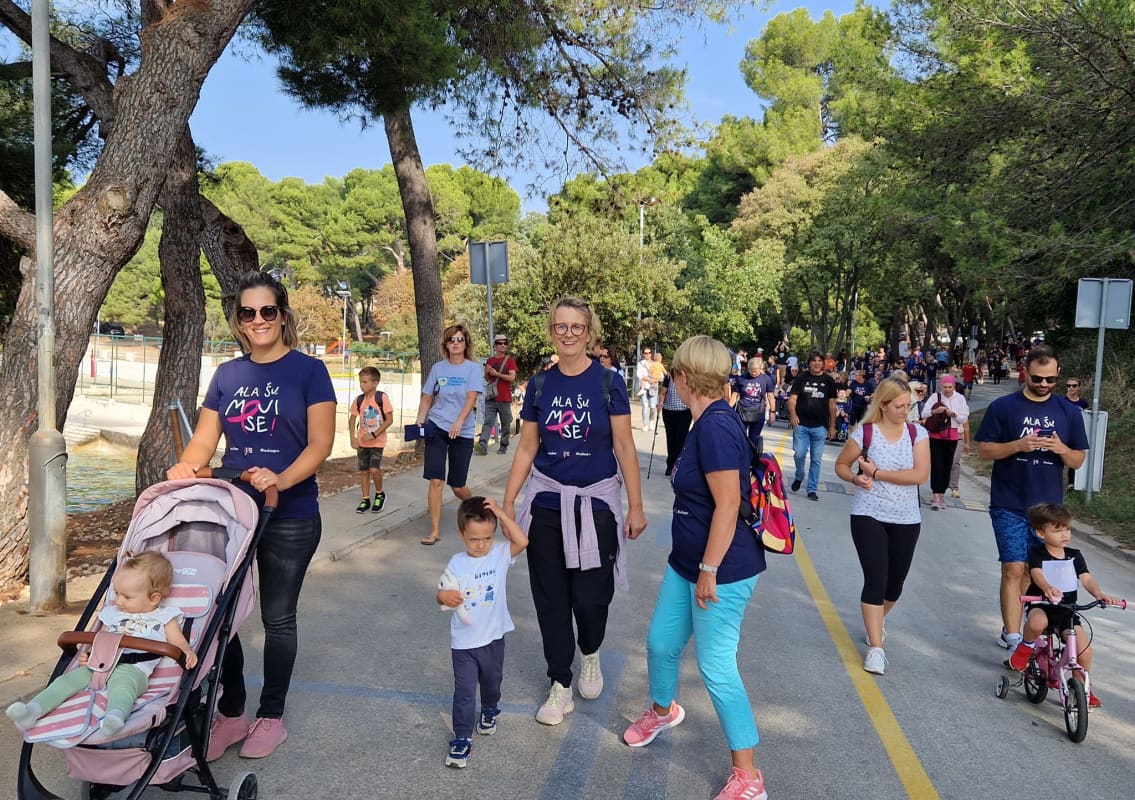 - Akcija je i više nego uspjela. Jutros smo krenuli s 280 prijavljenih, a na kraju je, po majicama, trčalo i hodalo blizu 700 ljudi. Srca su nam tako puna da je to nešto nevjerojatno, rekla nam je uzbuđeno predsjednica pulskog Kluba žena liječenih od karcinoma od dojke 'Gea' Nataša Vitasović danas, nakon završetka humanitarne utrke "Ne ću ben, hodi zajno!" koju ova udruga organizira održava svakog listopada povodom Dana ružičaste vrpce.