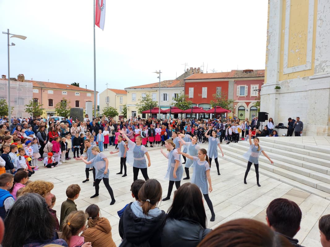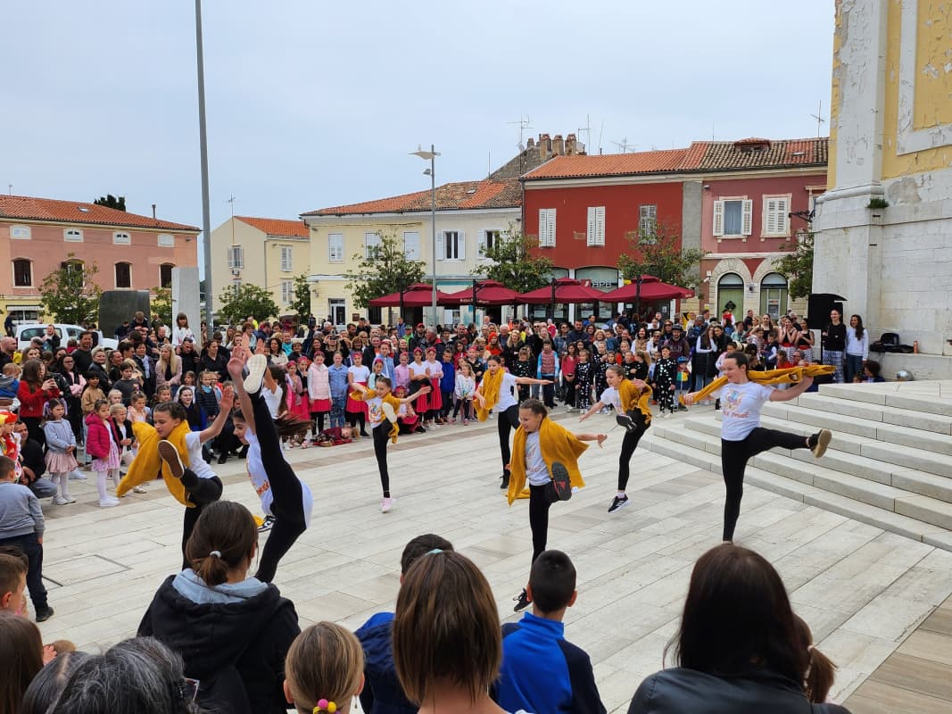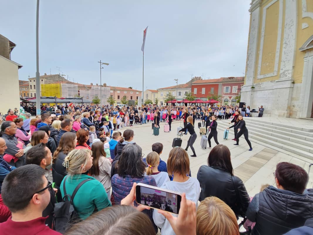 Više od 120 mladih plesačica i plesača nastupilo je jutros na porečkom Trgu slobode, u organizaciji Udruge mladih USB Poreč. I ne samo oni! U ritmičnim pokretima, sa širokim osmjesima i rukama u zraku, na momente im se pridružila i brojna publika roditelja, nonića, prijatelja i drugih sugrađana, pa i turista svih generacija.