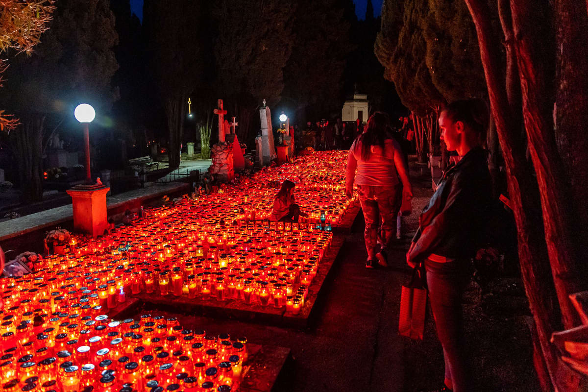 Svečanost trenutka dolazi do izražaju pogotovo kad padne mrak, a groblje osvjetljava tisuće cvijeća.