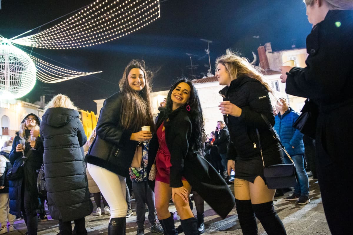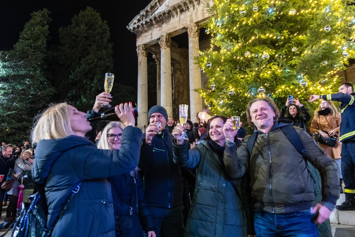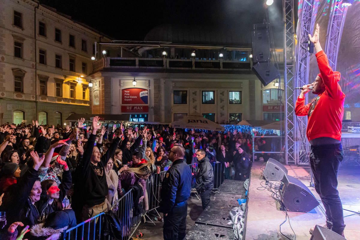 Iznadprosječno toplo vrijeme i večer bez kiše privukli su veliki broj Puljana na proslavu nove godine na otvorenom, u centru grada.