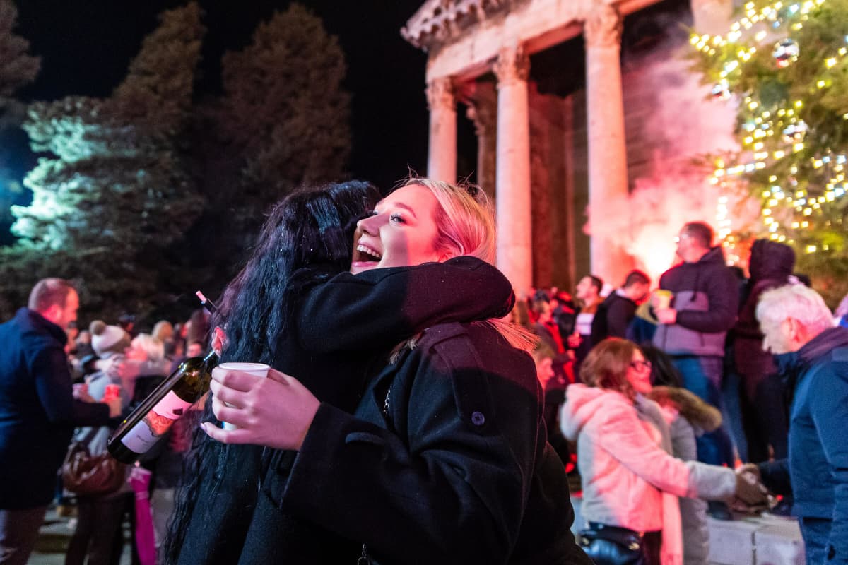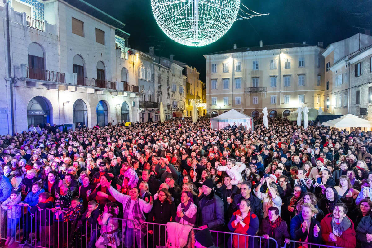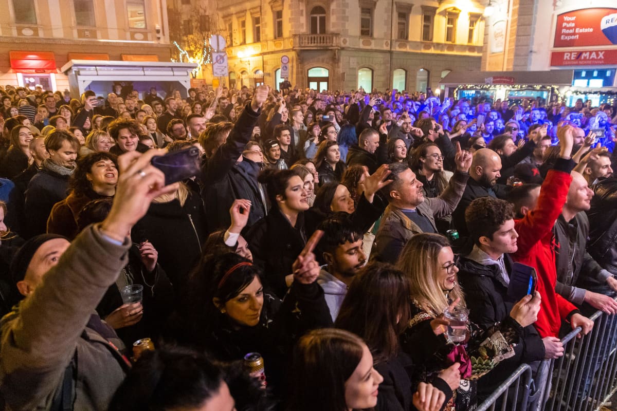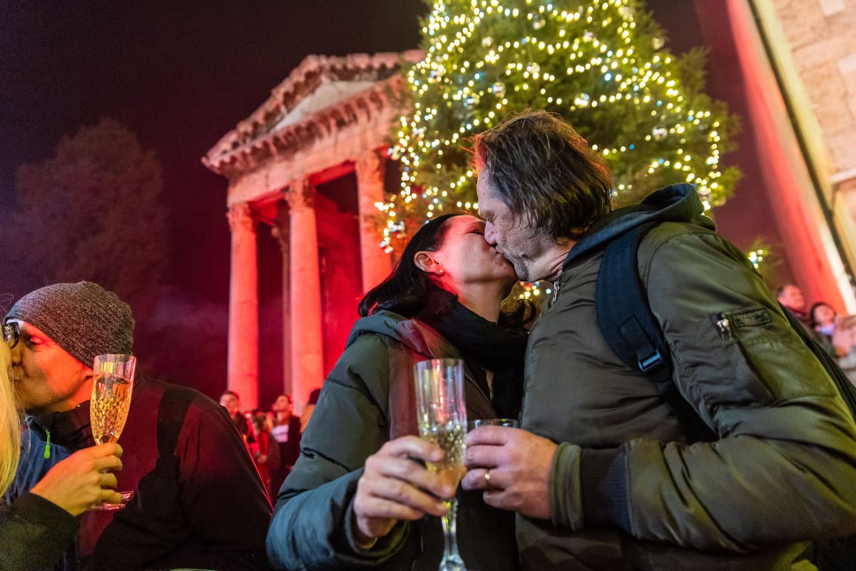 Iznadprosječno toplo vrijeme i večer bez kiše privukli su veliki broj Puljana na proslavu nove godine na otvorenom, u centru grada.