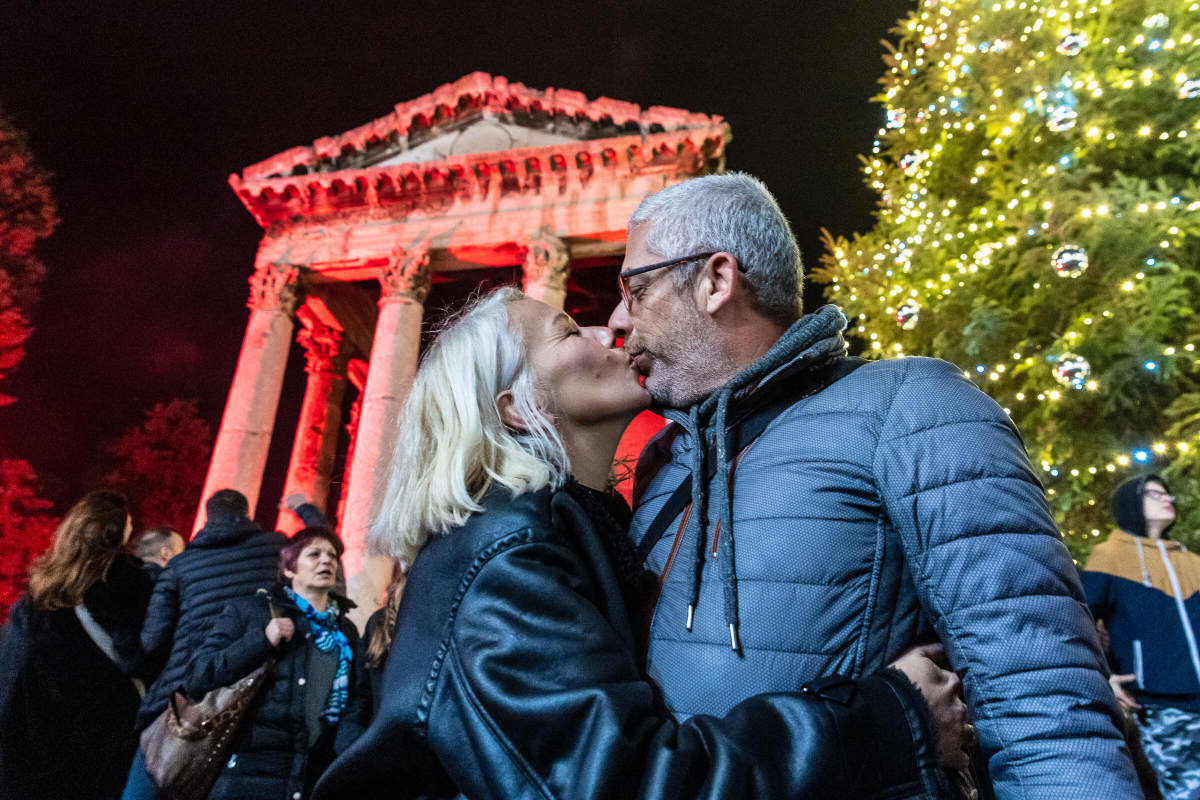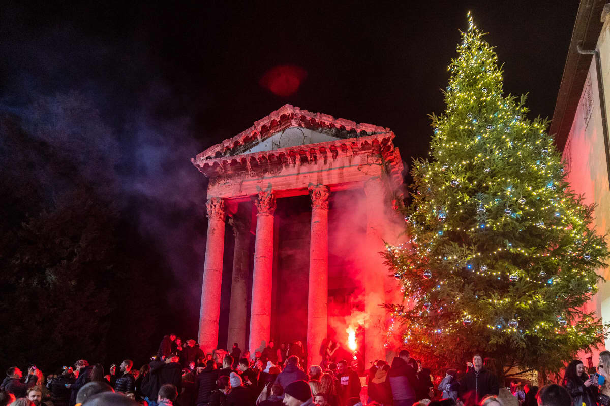 Forum, gdje su prisutne zabavljali pjevačica Indira Forza, DJ Sword i Funbox Band, bio je prepun veselih ljudi, a slikovita novogodišnja čestitanja uz grljenje i ljubljenje pred Augustovim hramom zabilježio je naš fotograf Manuel Angelini.