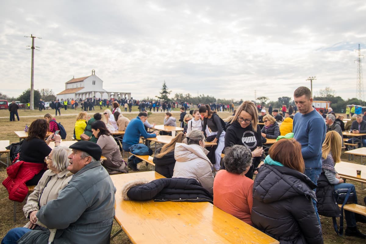 Od jutarnjih sati, na livadi preko puta bazilike održavao se i sajam domaćih proizvoda i rukotvorina, a hodočasnicima je na odredištu poslužena i uobičajena marenda za ovaj događaj - fritaja s kobasicama.