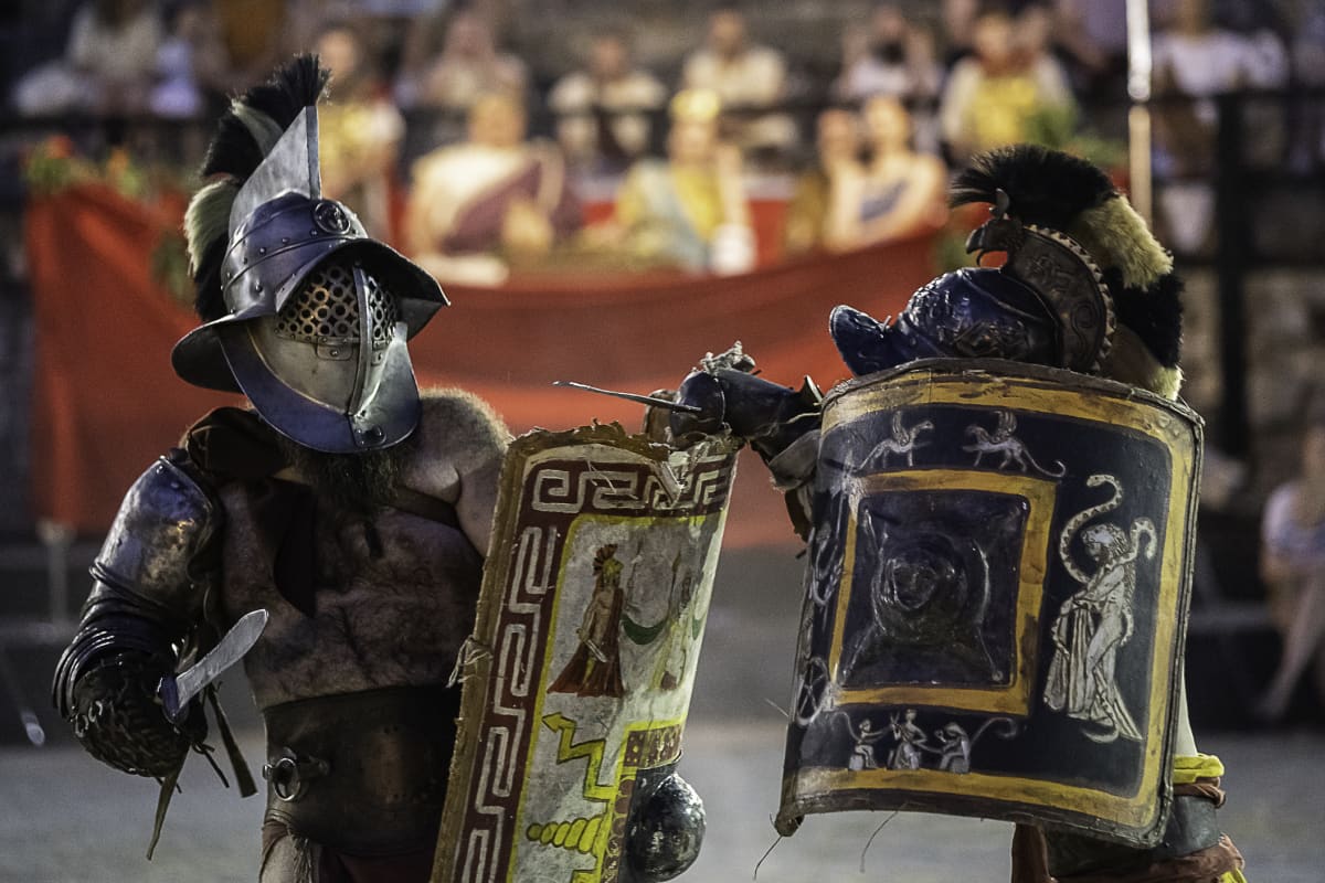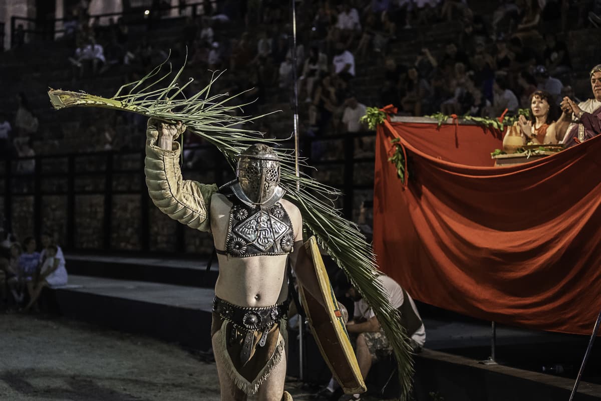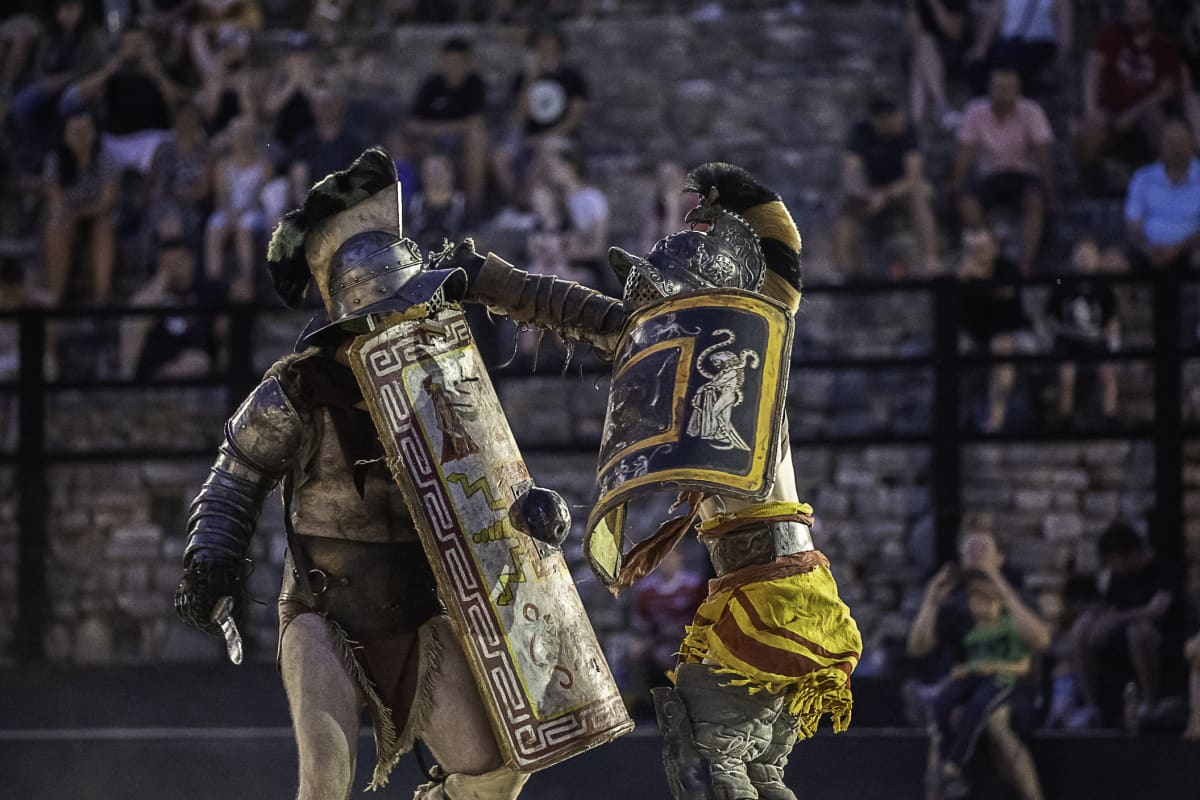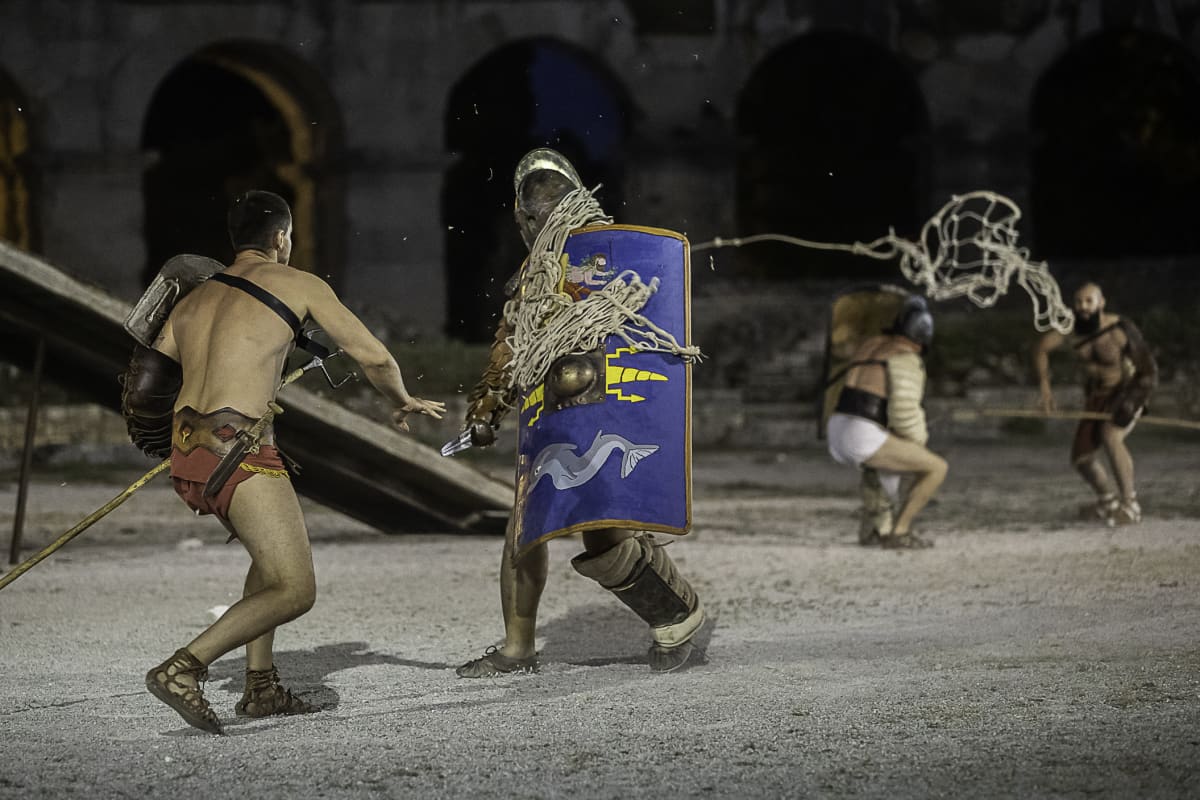 Spectacvla Antiqva svoje gledatelje upoznaje s tradicijom koja seže sve do četvrtog stoljeća prije Krista. Gladijatorske borbe u Areni oživljavaju duh i mentalitet ondašnji ljudi, oživljavaju vrijeme gladijatorskih borbi u kojima nije bilo milosti, a bile su pomno organizirane i izuzetno popularne, a kako to izgleda na terenu možete pogledati u velikoj fotogaleriji našeg reportera Manuele Angelinija.