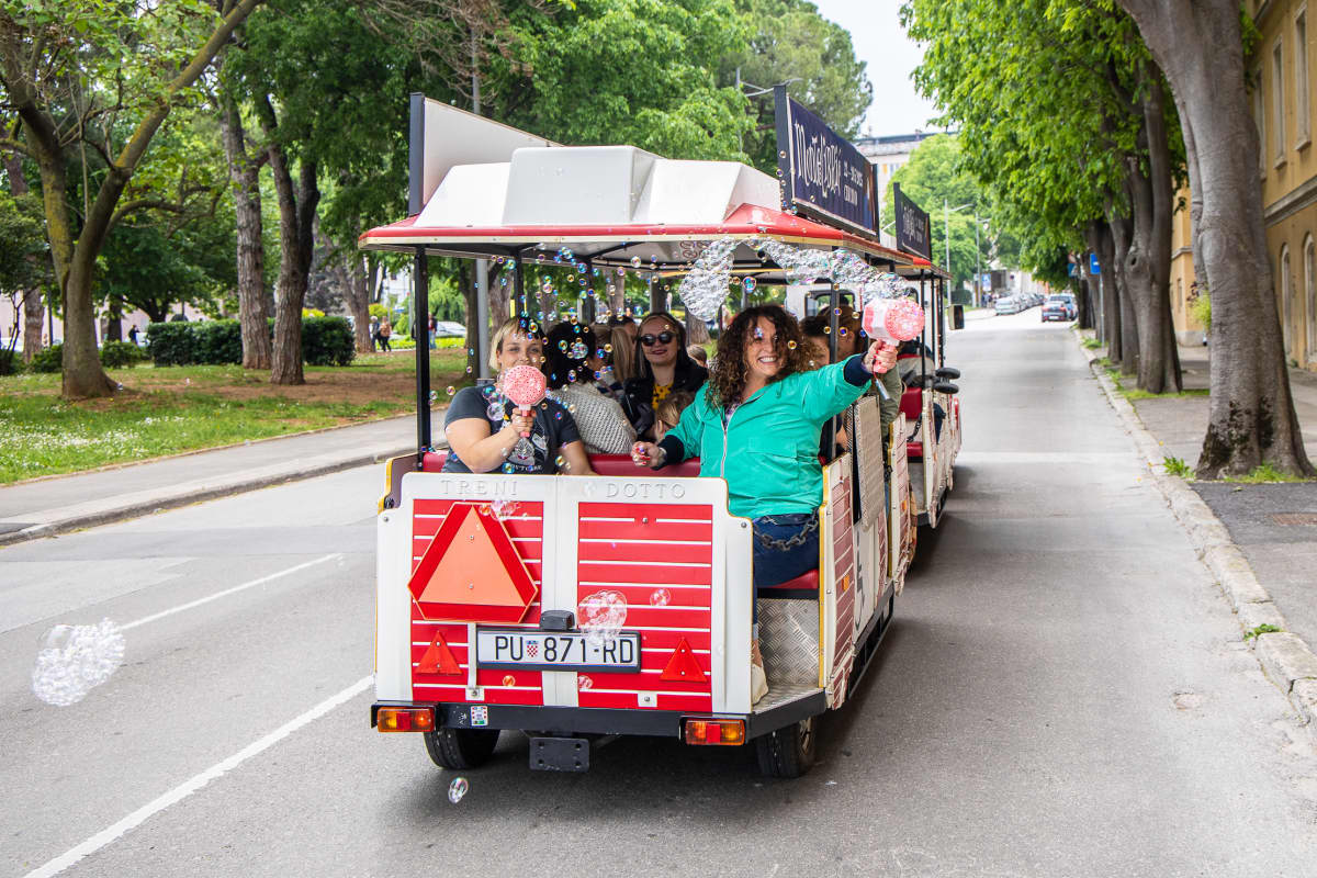 Dva dana prije službenog otvorenja Festivala dječje knjige Monte Librić pulskim je ulicama jutros vozio veseli Librićev vlakić. Polazna stanica bila je kod Arene, a dvosatno putovanje vodilo je vesele putnike preko Giardina, Rive i opet do Arene.