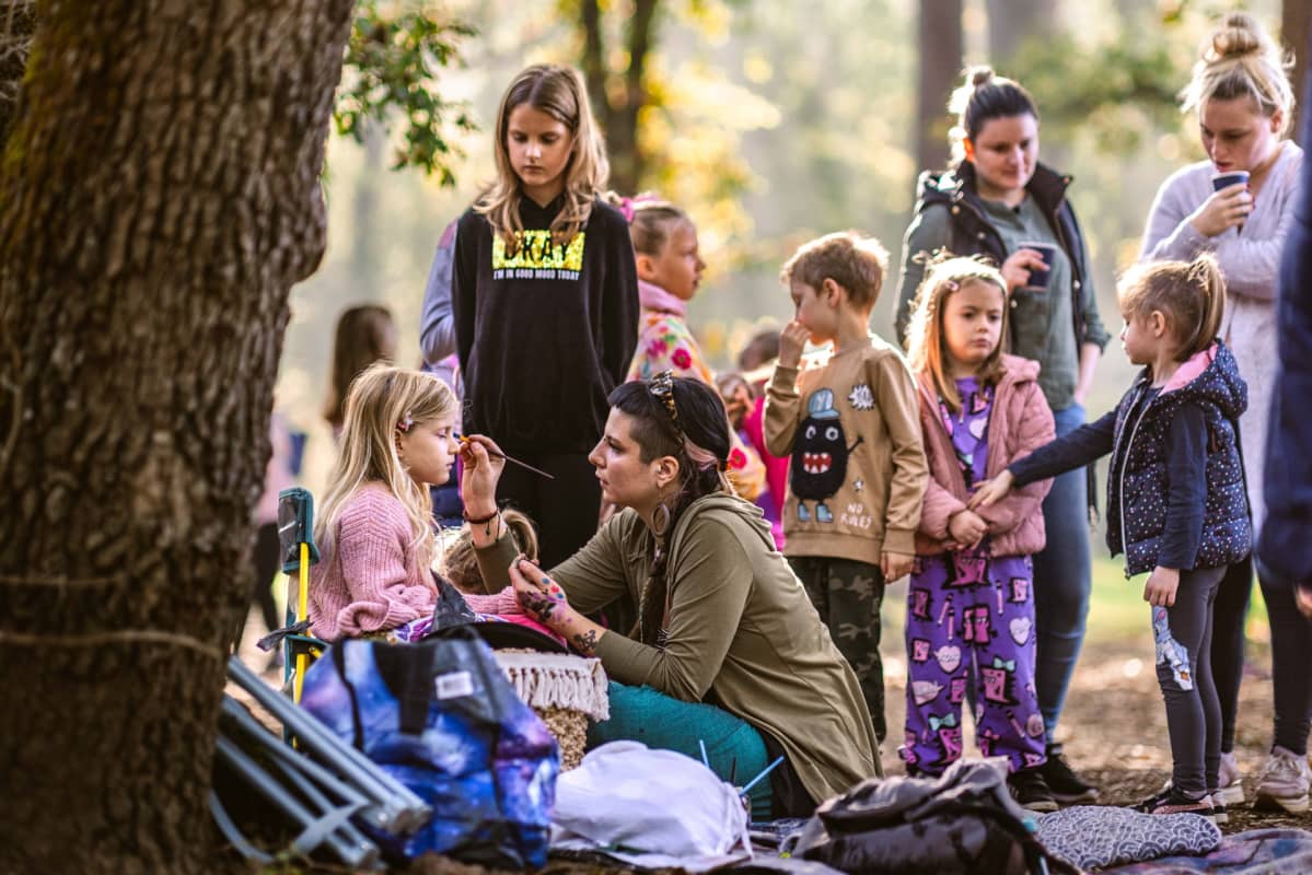 Za to vrijeme najmlađi su se vratili s radionice direktno na oslikavanje lica kod Anike Derocchi, pa pojurili u potragu za blagom, te se rastrčali po čitavoj centralnoj livadi Šijanske šume.