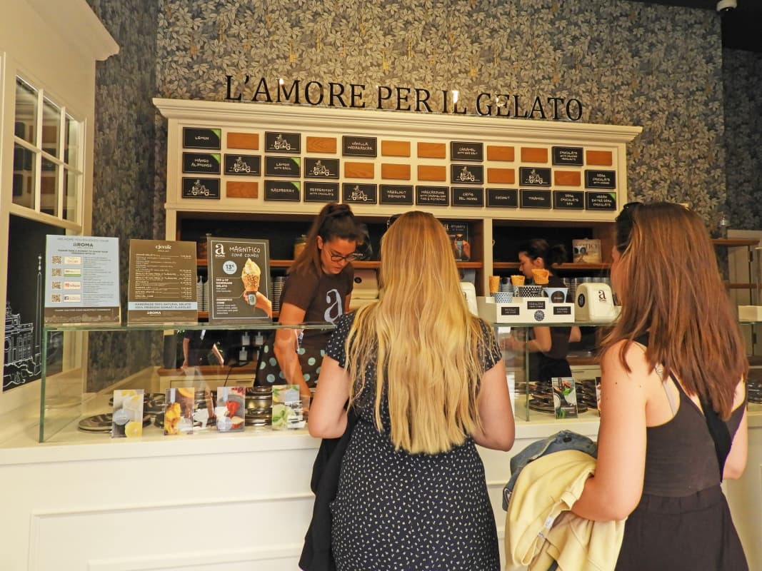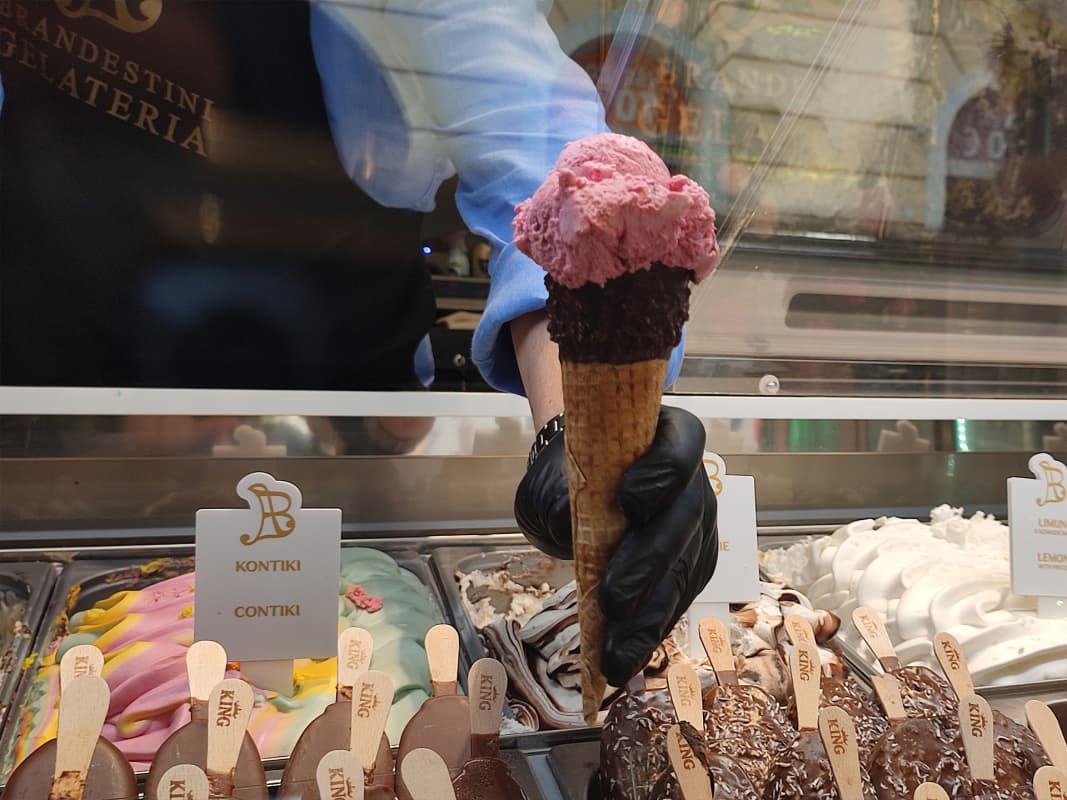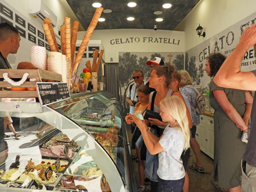 Ono što prvo osim gužve na ulicama upada u oči je svakako želja turista za okrjepom, terase ugostiteljskih objekata su pretežno pune, ali jako je puno i onih koji se odlučuju na poslasticu čija povijest po nekim pričama seže još u doba staroga Rima, kada je car Neron preko ljeta na raspolaganju imao snijeg i led koji su mu robovi donosili s planina, te potom čuvali u posebnim jamama kako bi što duže bio očuvan.