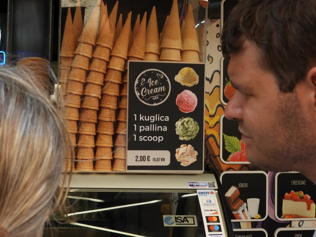 Kakve su cijene sladoleda? Ono što se može vidjeti iz ponude je da se cijene jedne kuglice kreću od dva, do dva i pol eura, a ima i kuglica koje skoče do tri i pol eura. To su one s nekim specijalnim dodacima, raznim slatkastim preljevima, dodanim smrznutim voćem i jestivim dekoracijama.