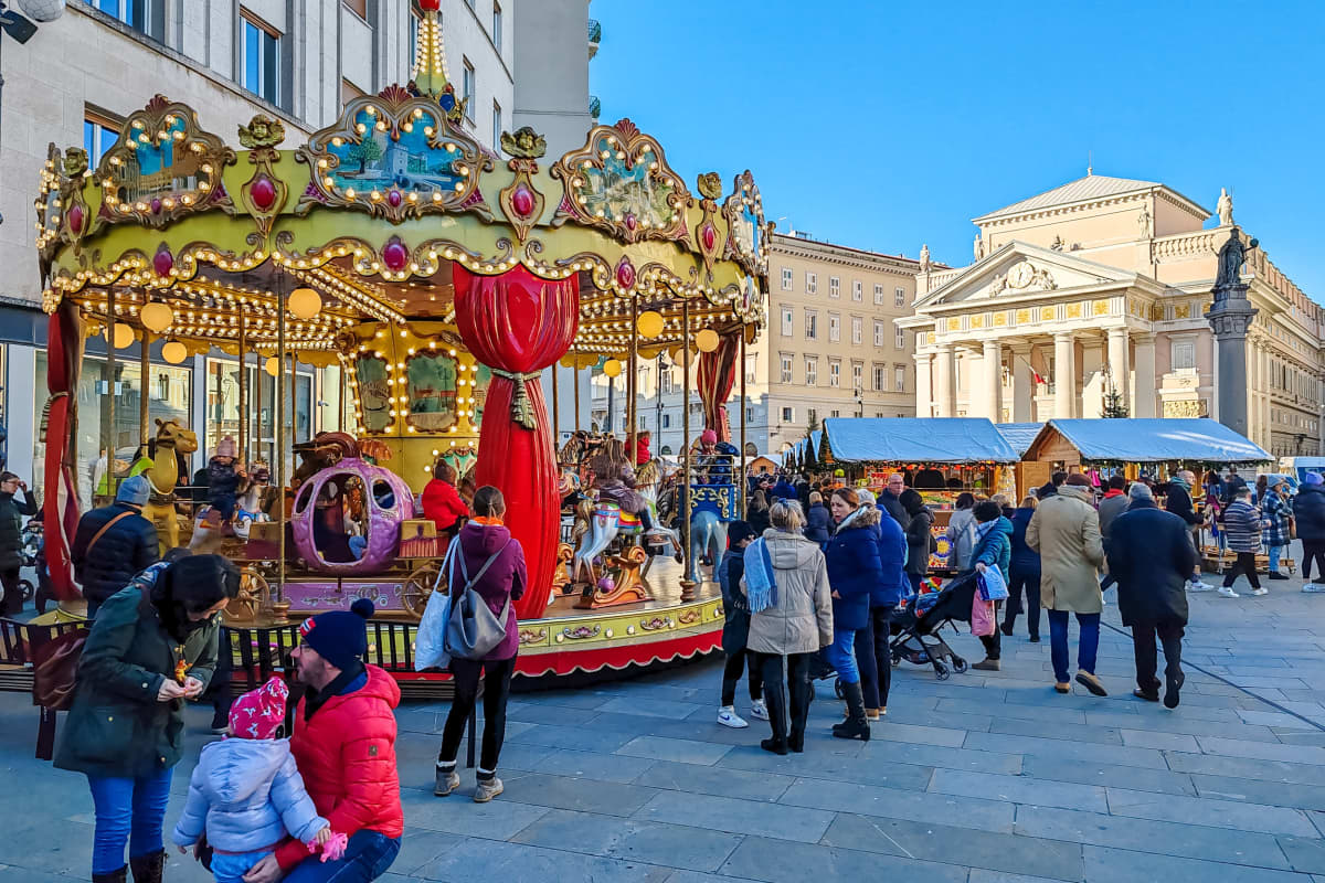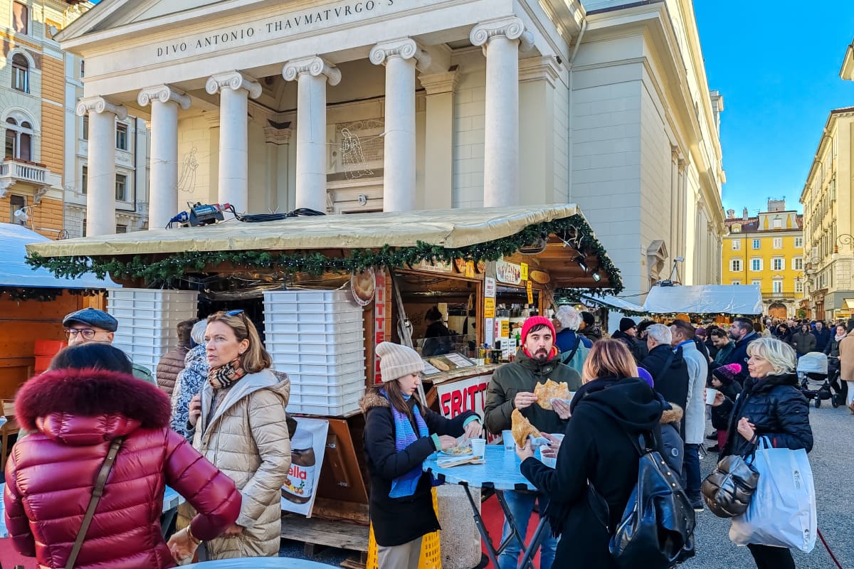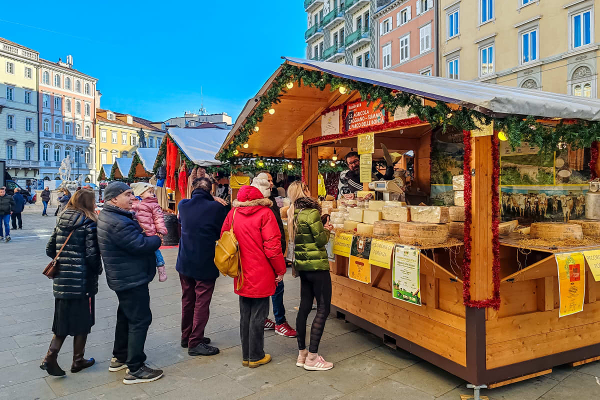 Ovih je dana blagdanski okićeni Trst još ljepši. Piazza Unità ukrašena je s dva reda osvijetljenih božićnih drvaca, a božićna atmosfera „raste“ uz glazbu, „ringlšpil", klizalište (ne, ne piše "pattinatoio") i ulične prodavače na trgovima San'Antonio i Piazza della Borsa, u slikovitoj Cavani, u ulicama Ponchielli i via delle Torri. Više od 50 štandova nudi gastronomske proizvode, začine, zanimljive obrtničke proizvode, rabljenu robu...