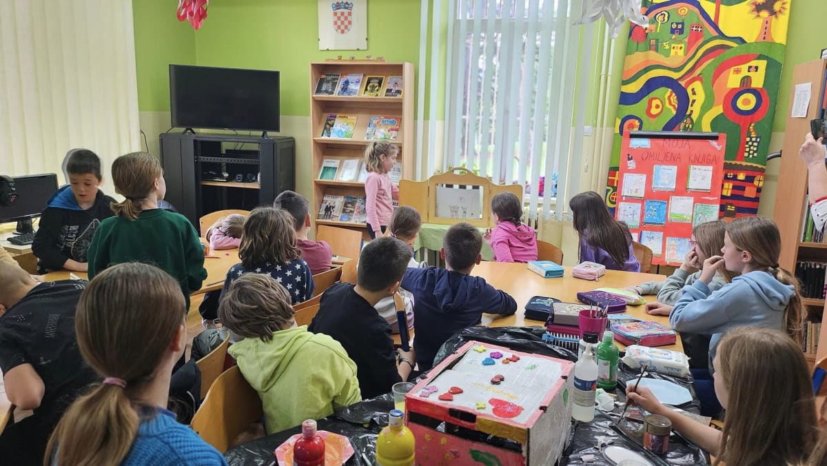 Prvi susret u knjižnici s kamišibajem učenici 3. i 4. razreda imali su zahvaljujući Izabeli Aranzi iz Udruge Birikina. Učenici su odslušali priču i na radionici izradili svoj prvi kamišibaj.