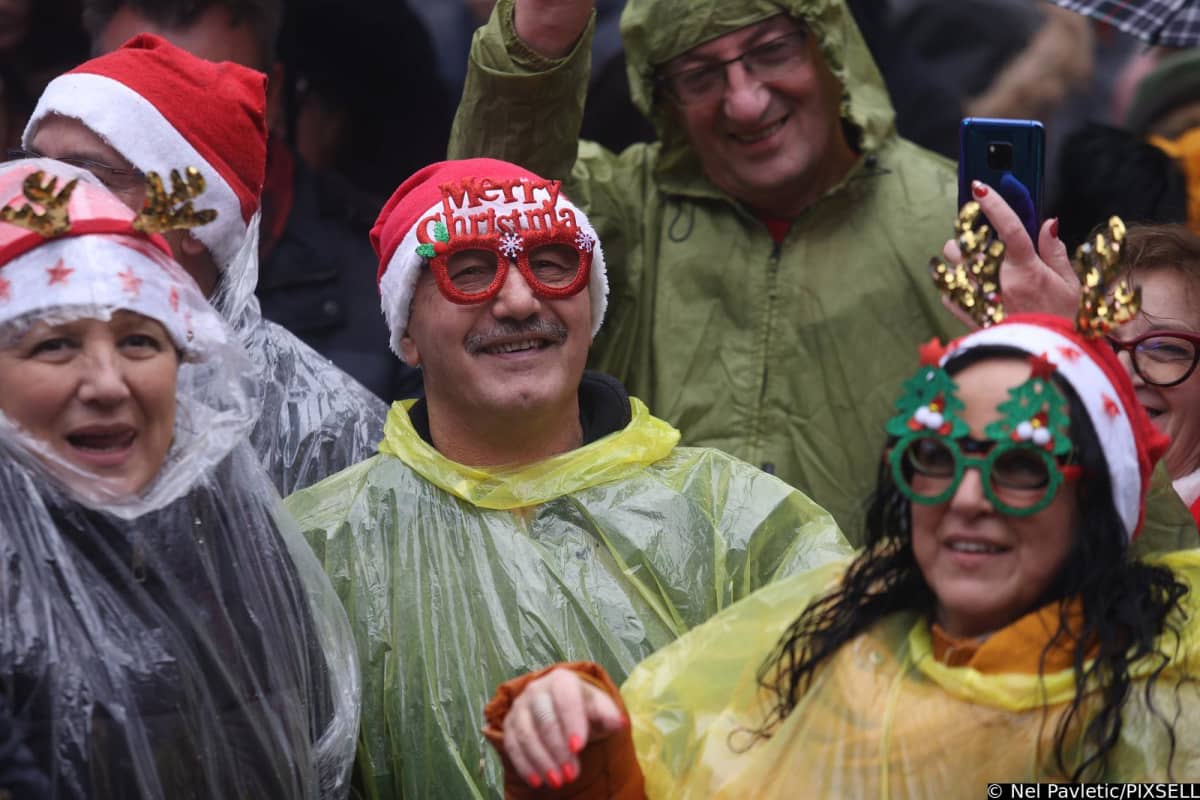 Unatoč kišovitom vremenu, u brojnim mjestima na Kvarneru i Gorskom kotaru mnogo se građana danas okupilo na otvorenom kako bi u podne ispratili staru godinu.