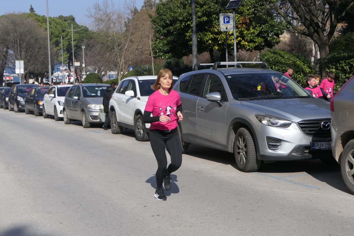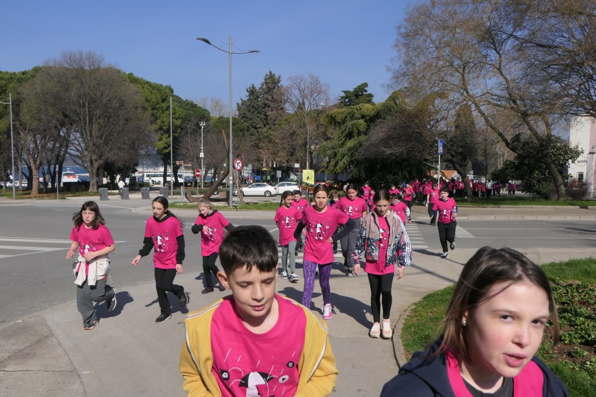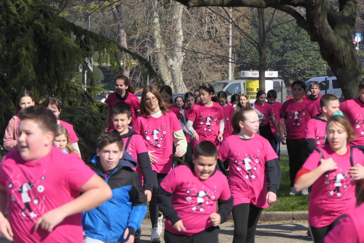 Vrtićarci su kredama iscrtali simbole mira i ljubavi na tlu, a osnovnoškolci su flomasterima ispisivali poruke na ružičastim majicama. Djeca su se posebno razveselila i s nestrpljenjem dočekala tradicionalnu utrku ružičastih majica Trgovačkom ulicom