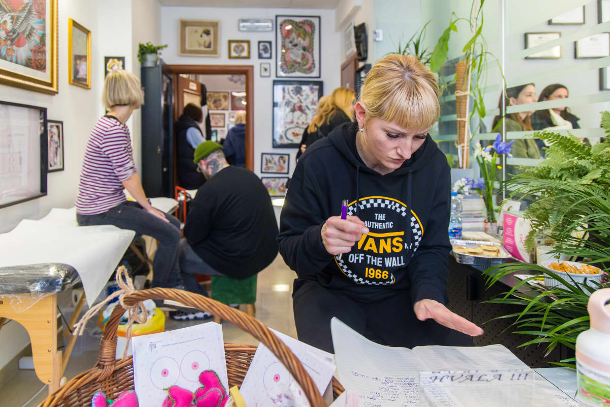Tijekom cijelog današnjeg dana, točnije od 10 do 20 sati, Kociančić s kolegama Lukasom Ferenčićem i Branetom Doričićem tetovira zainteresirane klijente, dok je za piercinge zadužena Donna Luisa Delbianco. Sav prihod namijenjen je radu pulskog Kluba Gea, žena liječenih od karcinoma dojke, koji provodi brojne programe podrške oboljelima od ove, ali i drugih malignih bolesti.